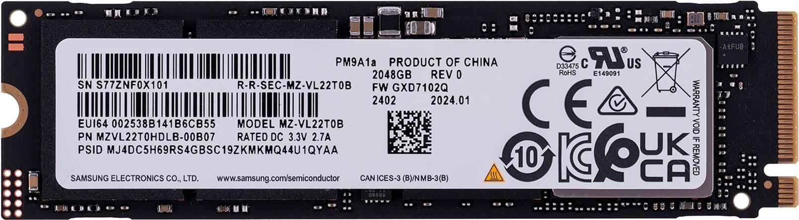 SAMSUNG PM9A1A 2TB SSD M.2 BULK CLIENT SSD NVME PCIE4.0X4 (MZVL22T0HDLB-00B07)