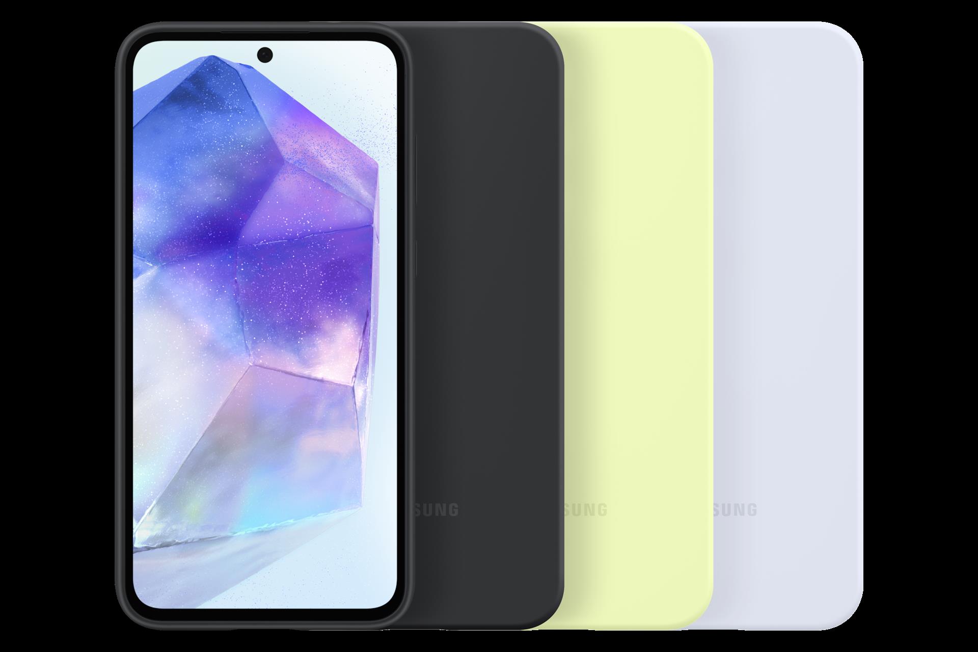 Sanfte Farben, solider SchutzDas Silicone Case, erhältlich in den Farben Black, Lime und Light Blue, umhüllt dein Galaxy A55 5G in modischen Pastellfarben und schützt es durch eine solide Silikonschicht.Sanft und geschmeidigDas Silicone Case verleiht deinem Galaxy A55 5G eine samtweiche Oberfläche, die sich geschmeidig anfühlt. Wie eine solide, passgenaue zweite Haut, die dein Gerät vor Kratzern und Stürzen schützt.Angenehme Haptik, sicherer GriffDas Silicone Case liegt angenehm in deiner Hand und sicher in deiner Handfläche.Hauptmerkmale