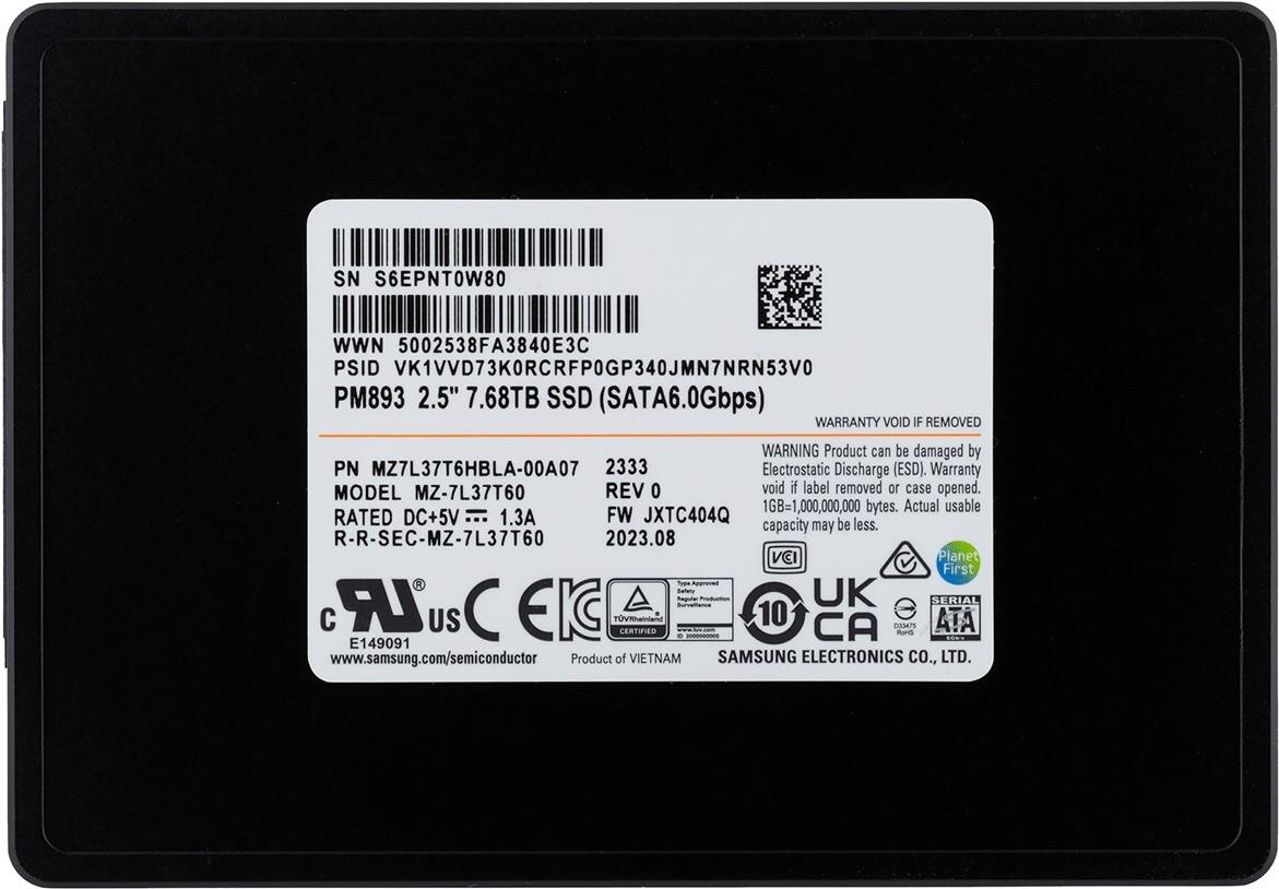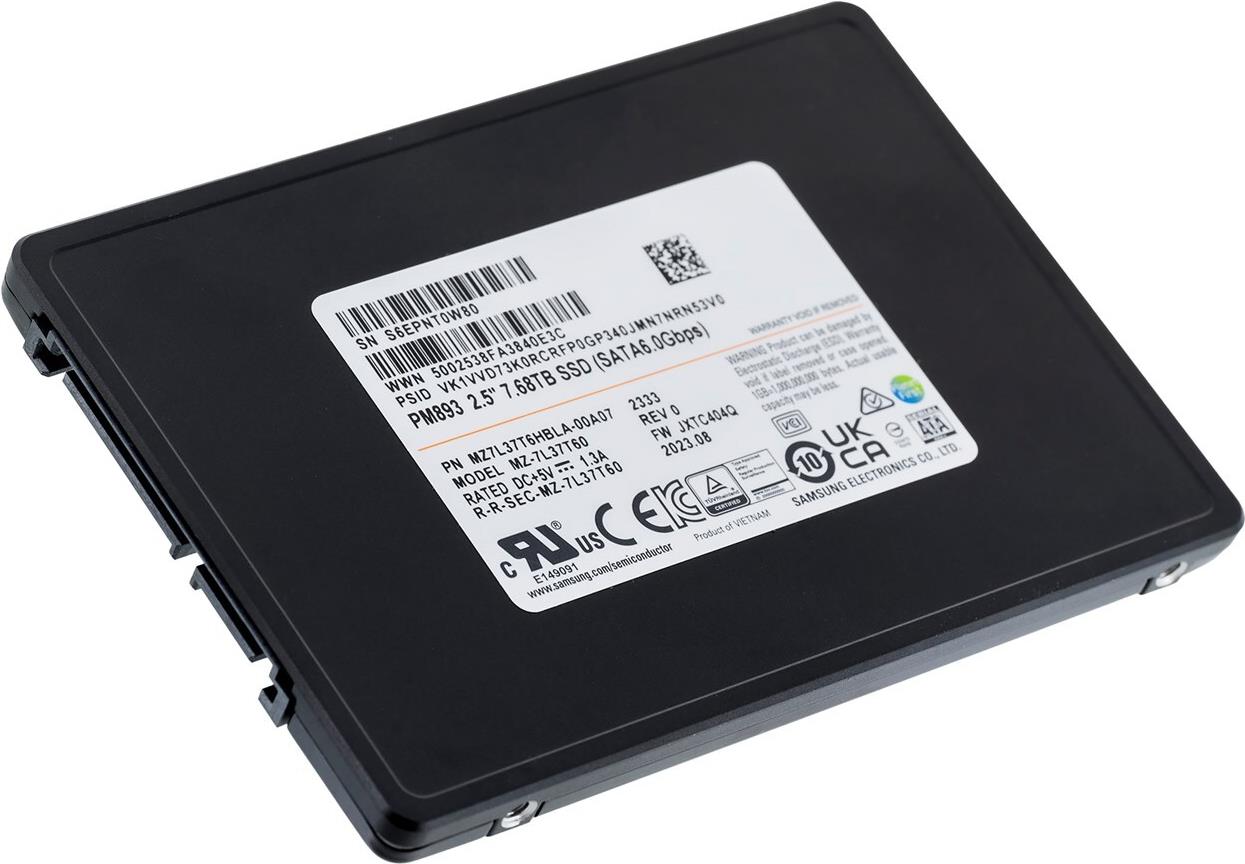 • Samsung SSD PM893 7.68 TB SATA (6Gb/s) 2.5" Data Center SSD OEM