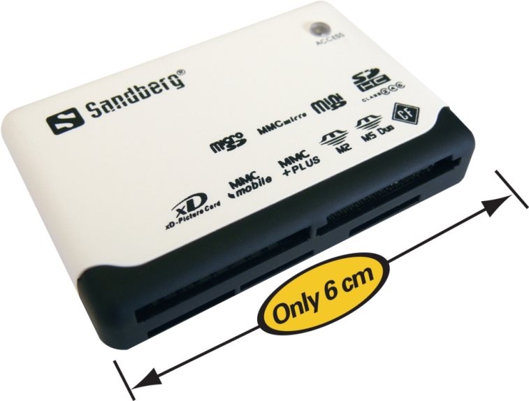 Der Sandberg Multi Card Reader ist die richtige Wahl, wenn Sie mehrere verschiedene Arten von Speicherkarten lesen und beschreiben möchten. Mit dem Kartenleser im USB-Anschluss können Sie eine Speicherkarte genauso lesen und beschreiben wie eine Festplatte. So können Sie z.B. die Bilder Ihrer Digitalkamera in Sekundenschnelle betrachten.