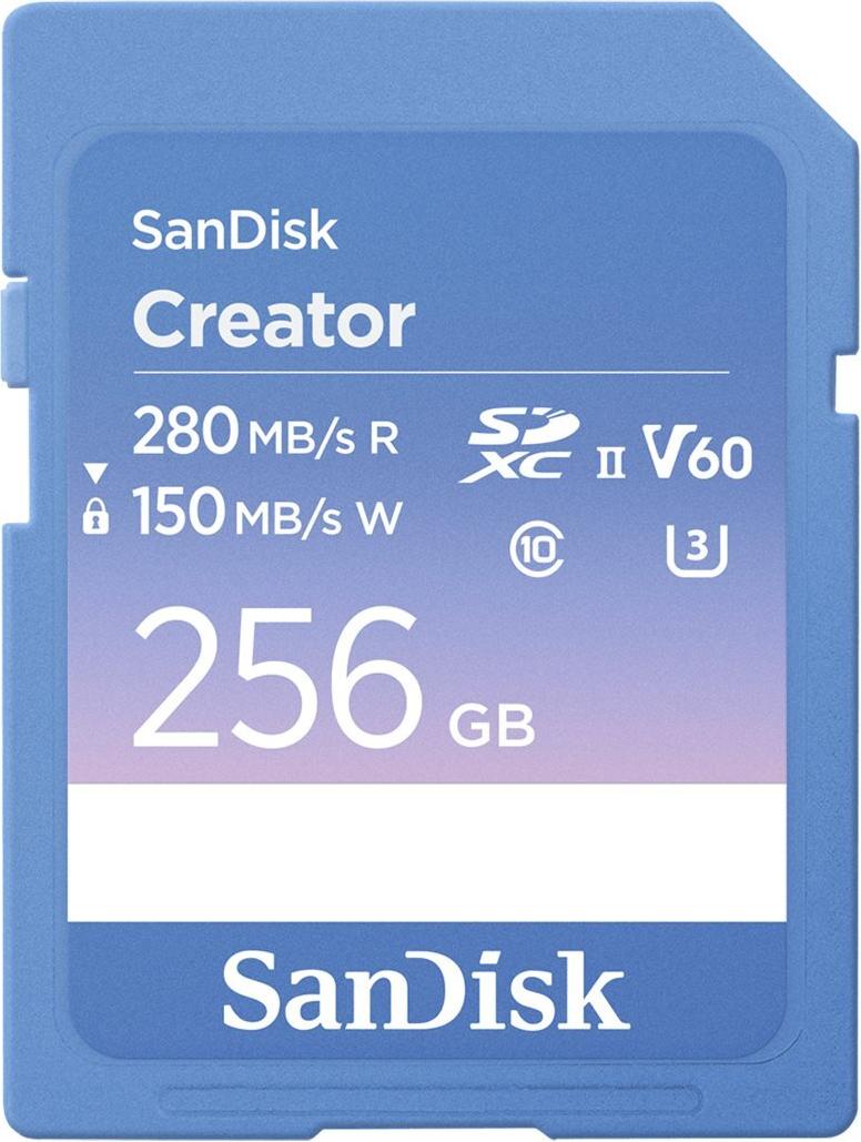 Die SanDisk Creator 256 GB SDXC UHS-II-Speicherkarte wurde für angehende Content-Ersteller entwickelt, die zuverlässige Leistung und ausreichend Speicherplatz benötigen. Mit einer Leserate von 280 MB/s und einer Schreibrate von 150 MB/s bietet diese Karte schnellen Zugriff auf Dateien und ist somit ideal für die Verarbeitung von hochauflösenden Bildern und 4K-Videos. Die Geschwindigkeitsbewertungen Video Class V60, UHS-II U3 und Class 10 stellen sicher, dass sie den Anforderungen professioneller Videoaufnahmen mit minimaler Verzögerung oder Unterbrechung gerecht wird. Der integrierte Schreibschutzschalter erhöht die Datensicherheit und verhindert unbeabsichtigtes Löschen oder Ändern. Die Speicherkapazität von 256 GB ermöglicht die umfangreiche Speicherung großer Dateien und macht die Karte zu einem Begleiter für ausgedehnte kreative Sitzungen, ohne dass häufige Übertragungen erforderlich sind. Die SanDisk Creator-Speicherkarte unterstützt eine Vielzahl von Anwendungen für die Erstellung von Inhalten, Fotografie und vieles mehr.