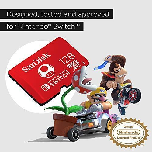Mit der ultraschnellen, offiziell lizenzierten SanDisk microSDXC-Karte lässt sich der Speicher der Nintendo Switch schnell um bis zu 128 GB erweitern. Weniger warten und dafür länger spielen - Lese- und Schreibgeschwindigkeiten von bis zu 100 MB/s bzw. 90 MB/s machen es möglich.