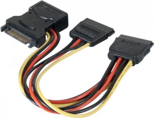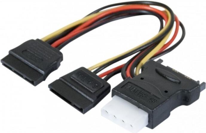 SATA Strom-Adapterkabel, SATA auf 2x SATA + Molex, 1x SATA St. / 2x SATA Bu + Molex Bu. SATA Splitterkabel - Anschluss von bis zu 3 HDDs an einen SATA Stromanschluss (147557)