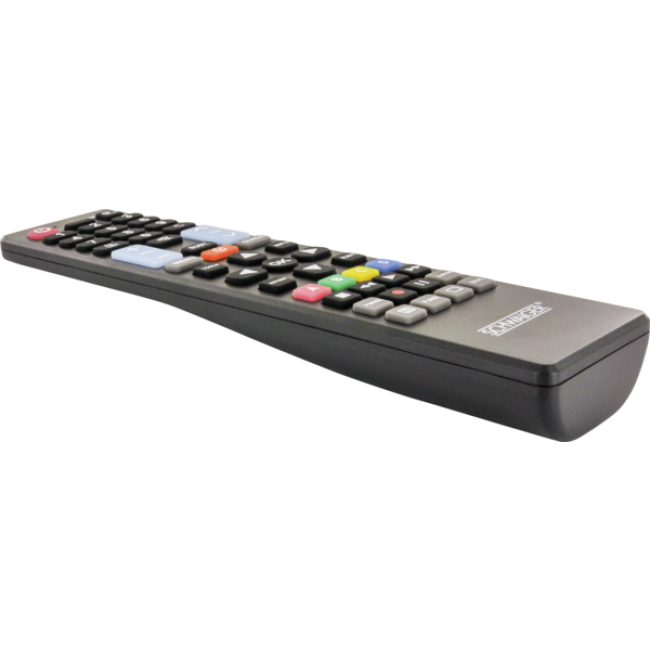 Die universale Schwaiger Fernbedienung ist der ideale Ersatz für jede verlorene, verlegte oder defekte Original-Fernbedienung. Steuern Sie auch weiterhin absolut zuverlässig Ihr TV Gerät der Marke Samsung, LG, Sony, Philips oder Panasonic, wobei die Ersatzfernbedienung mit markenspezifischen Sondertasten dem Original in puncto Design, Komfort und Bedienbarkeit in nichts nachsteht. Ausgestattet mit allen essentiellen Funktionen auf insgesamt 49 Tasten kann das Modell sofort ohne aufwendiges Anlernen für nahezu jeden Fernseher des jeweiligen Herstellers eingesetzt werden.
