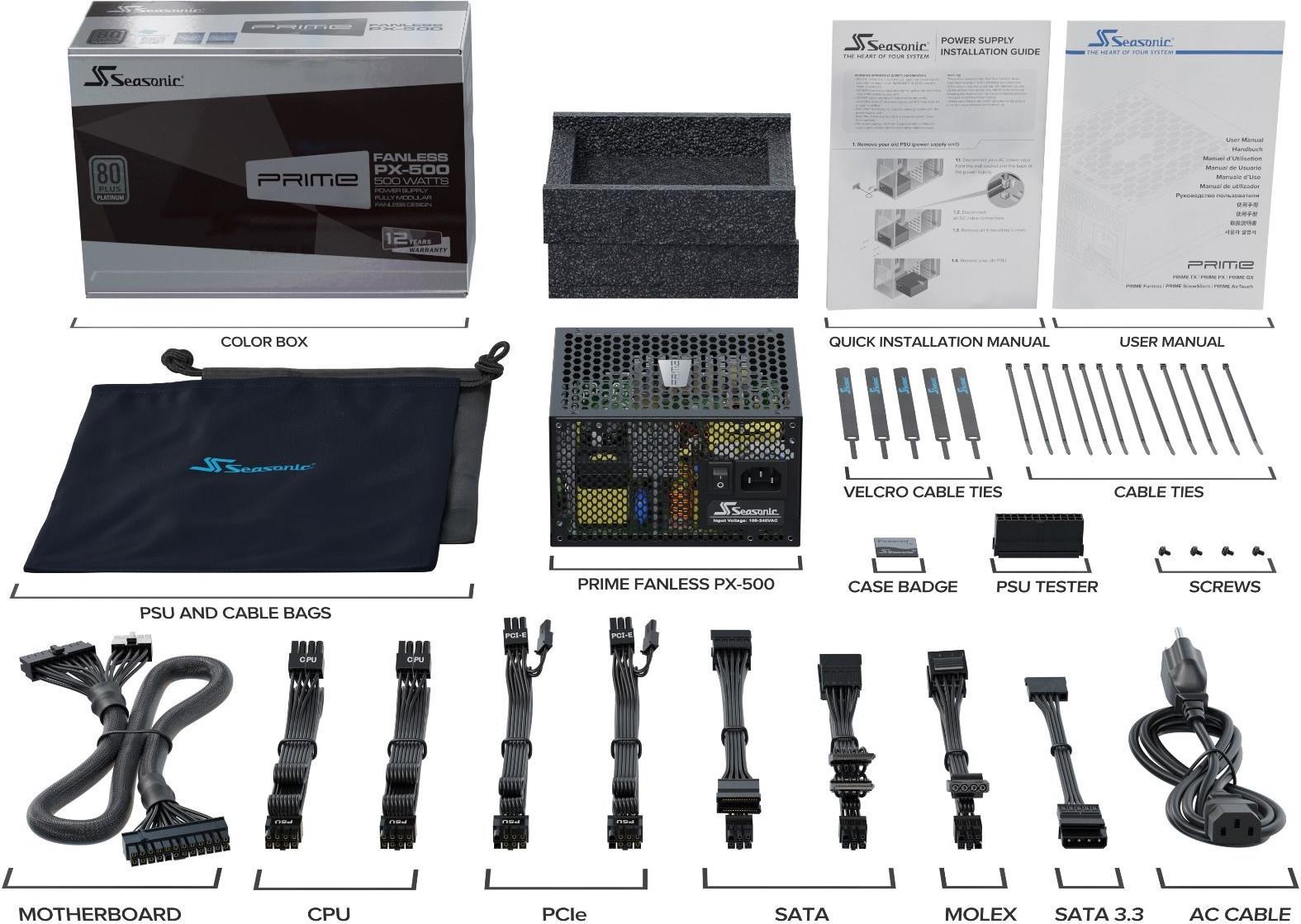 Seasonic Netzteil 500W PRIME PX-500 Fanless (80+Platin) (PRIME-PX-500)