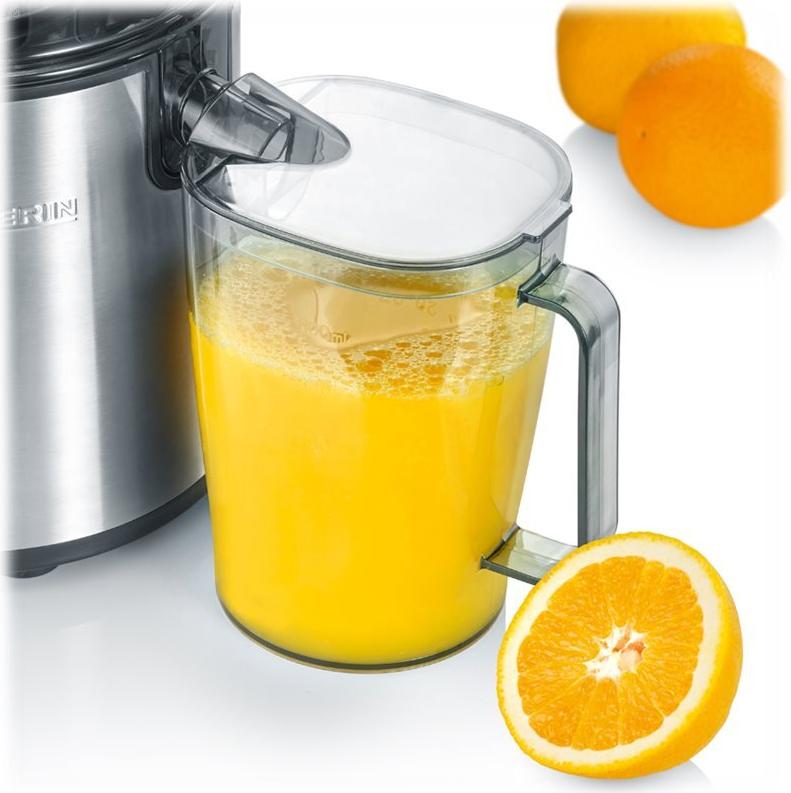 Erleben Sie Vitamingenuss ohne zeitraubendes Auspressen: Der leistungsstarke Entsafter von SEVERIN verarbeitet Ihr Obst und Gemüse in Sekundenschnelle zu gesunden Vitamindrinks. Gönnen Sie sich zum Frühstück, in der Mittagspause oder einfach als Energiekick zwischendurch, einen selbst gepressten Saft aus Ihrem Entsafter.