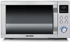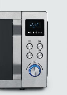 3-in-1-Mikrowelle mit Grill- und Heißluftfunktion mit einem Fassungsvermögen von ca. 25 Litern im hochwertigen Edelstahldesign. Mikrowelle, Grill- und Heißluftfunktion können separat oder gleichzeitig genutzt werden; ein Grillrost und eine antihaftbeschichtete Knusperplatte gehören zum Zubehör der Küchenmaschine. Die Leistungsstufe und Garzeit Ihres Lieblingsgerichts können Sie dank der praktischen Favoritenfunktion speichern und jederzeit wieder aufrufen.
