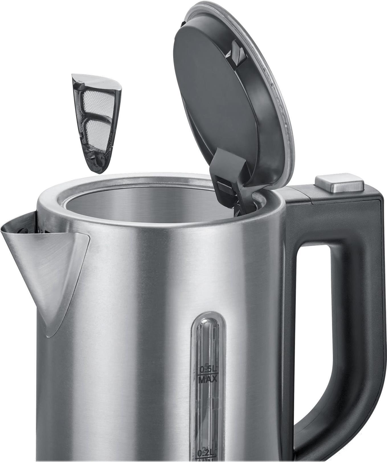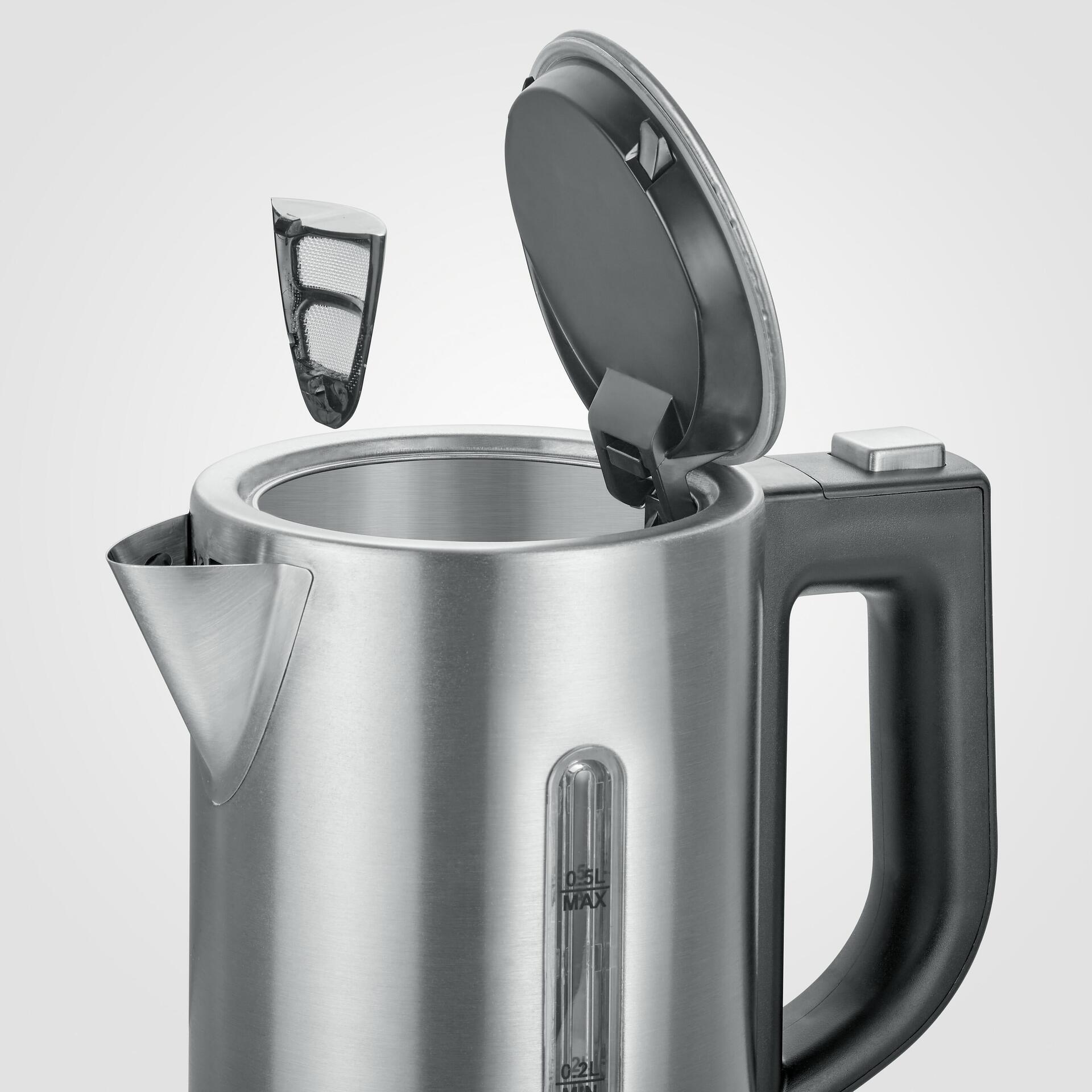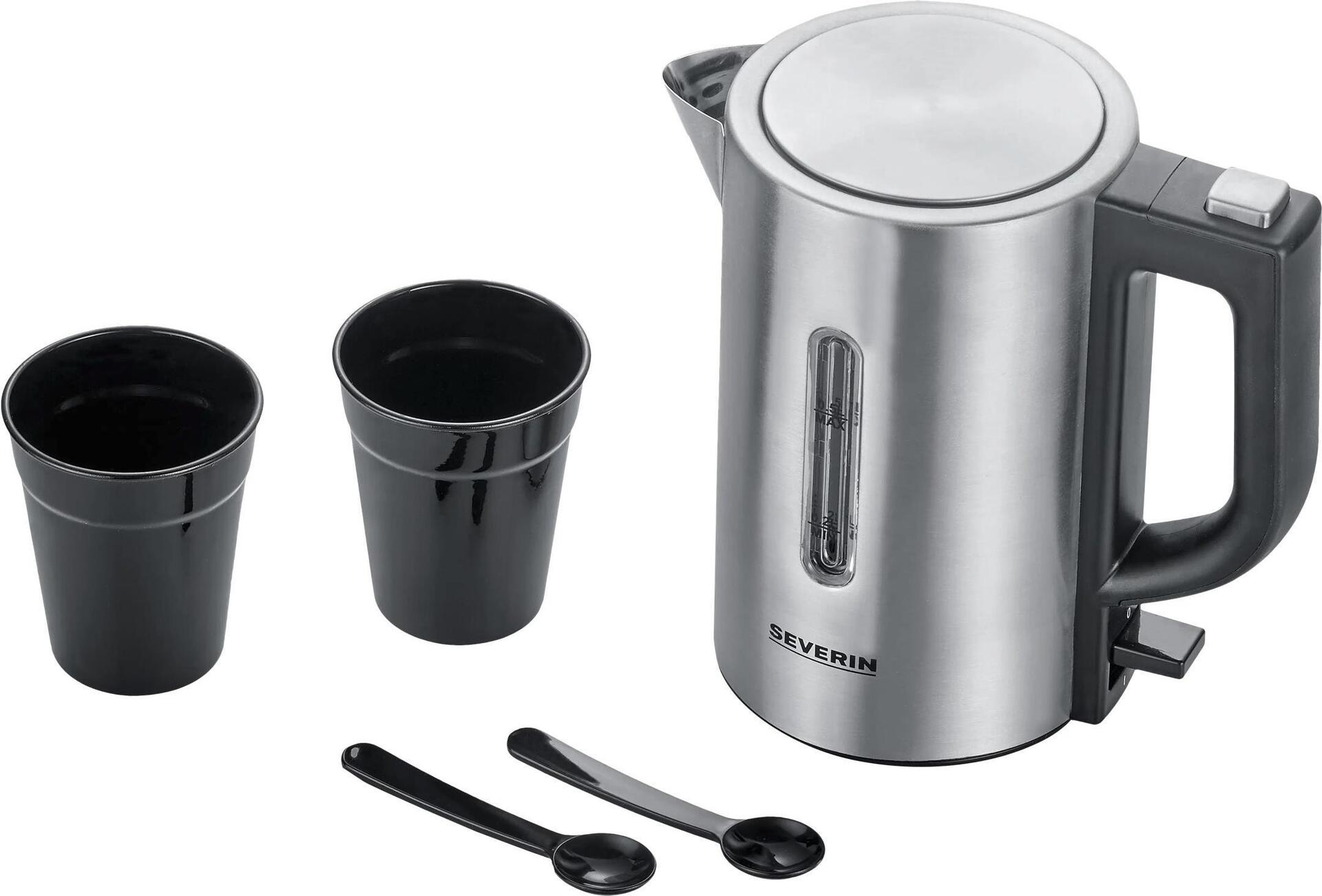 Der praktische und stylische Begleiter für Unterwegs! Ob zum Aufgießen von Tee und Instantgerichten oder für die Zubereitung von Babynahrung Unterwegs - der praktische Mini Reise-Wasserkocher WK 3647 ist dank seiner kompakten Größe und der umschaltbaren Spannung von 115/230 Volt ideal für Campingausflüge, Hotels und Reisen geeignet. Durch die 1-Hand-Bedienung und der frontalen Wasserstandsanzeige lässt sich der Wasserkocher sicher und komfortabel bedienen. Das hochwertige Edelstahldesign ist nicht nur optisch ein echter Hingucker, sondern garantiert durch die Verwendung von 100% BPA-freien Materialen auch einen unbedenklichen Genuss. Und damit Sie Ihre Heißgetränke entspannt genießen können, verfügt das Set über zwei sicher und leicht transportierbare Kunststofftassen mit zwei passenden Löffeln.