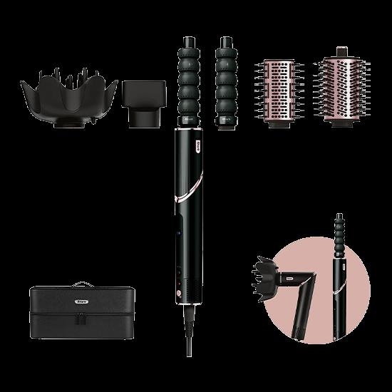 Der Shark FlexStyle HD446EU vereint mehrere Haarstyling-Funktionen in einem vielseitigen Gerät und ermöglicht nahtlose Übergänge zwischen Glätten, Locken, Volumen geben und Glätten. Mit drei Heizstufen und drei Geschwindigkeitsstufen kann dieser Haartrockner und Styler an verschiedene Haartypen und Styling-Vorlieben angepasst werden. Die innovative Coanda-Luftstromtechnologie hilft, das Haar ohne übermäßige Hitze zu stylen, fördert gesünderes Haar und erzielt gleichzeitig den gewünschten Look. Die mitgelieferten verschiedenen Bürsten und Werkzeuge, wie die Paddle-Bürste, die ovale Bürste, der Diffusor und die Konzentratordüse, bieten Flexibilität und praktische Funktionen für verschiedene Styling-Techniken. Der Heiß-/Kalt-Schalter sorgt für zusätzliche Kontrolle und ermöglicht das Styling mit präzisen Temperatureinstellungen. Ein Aufbewahrungskoffer für die einfache Organisation aller Zubehörteile ist ebenfalls enthalten, was das Gerät zu einem Begleiter für Beauty-Enthusiasten macht.