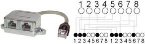BASIC-S--cat. 5e Patchkabeladapter, RJ 45 Stecker auf 2 x RJ 45 Buchse, geschirmt, Belegung: Ethernet / Ethernet, 0.1m.