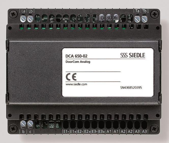 DoorCom-Analog im Schalttafelgehäuse als Schnittstelle für den Siedle In-Home-Bus, verbindet die Türstation mit der Amtstelefonie. • je nach Programmierung 1-31 Rufziele • max. 6 Steuerfunktionen über BSM/BSE… per MFV-Wahl ausführbar • gezielte Anwahl von max. 3 Türlautsprechern ohne Zusatzinstallation • gezielte Anwahl der zuletzt gerufenen Tür • Zweizeiliges alphanumerisches Display mit 16 Zeichen pro Zeile • 6 Tasten: komfortable Konfiguration • verhält sich wie ein Systemtelefon • folgende Rufmöglichkeiten sind zuordenbar (jeweils max. 22-stellig). • Direktrufe – Gezielter Teilnehmerruf – Gruppenrufe (abhängig von TK-Anlage) – Sammelrufe (abhängig von TK-Anlage) – Rufe an Nebenstellen, ins Amt bzw. Mobiltelefone • Kettenrufe – bei Nichtmelden/bei Besetzt • Systemfunktionen Türöffner und Licht per MFV-Wahl • Türmatikfunktion für 1 Rufeingang, mit/ohne vorheriger Türrufsignalisierung • Rufumleitung an zentrale Stelle (Concierge) • Tag-/Nachtschaltung an alternative Rufziele (abhängig v. bauseitiger TK-Anlage) • Apothekerschaltung • Mehrere DCAs in einem Sprechsystem bzw. an einer TK-Anlage möglich • Ruf- und Gesprächsdauer einstellbar • Signalisierung von Türrufen vor Gesprächsannahme • Rufunterscheidung für Türen oder Rufeingänge möglich (max. 2) • Aktivierbarer PIN-Schutz für z. B. Programmierung, Türöffner, Schaltfunktionen und Funktionsaktivierung • Zeitgesteuerte Aktivierung/Deaktivierung von z. B. Türmatik, Rufumleitung, Tag-/Nachtschaltung etc. über Zubehör DCSF 600-… und bauseitige Schaltuhr möglich • Steckbuchse für HT 811-… Servicehörer