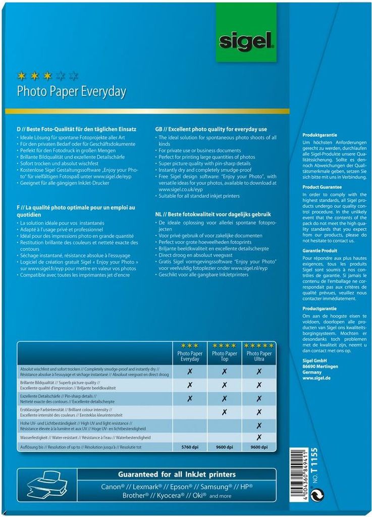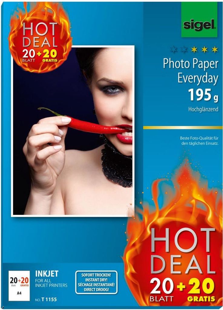 sigel InkJet-Everyday-Foto-Papier "HOT DEAL", DIN A4 hochglänzend, weiß, 195 g/qm - 1 Stück (T1155)
