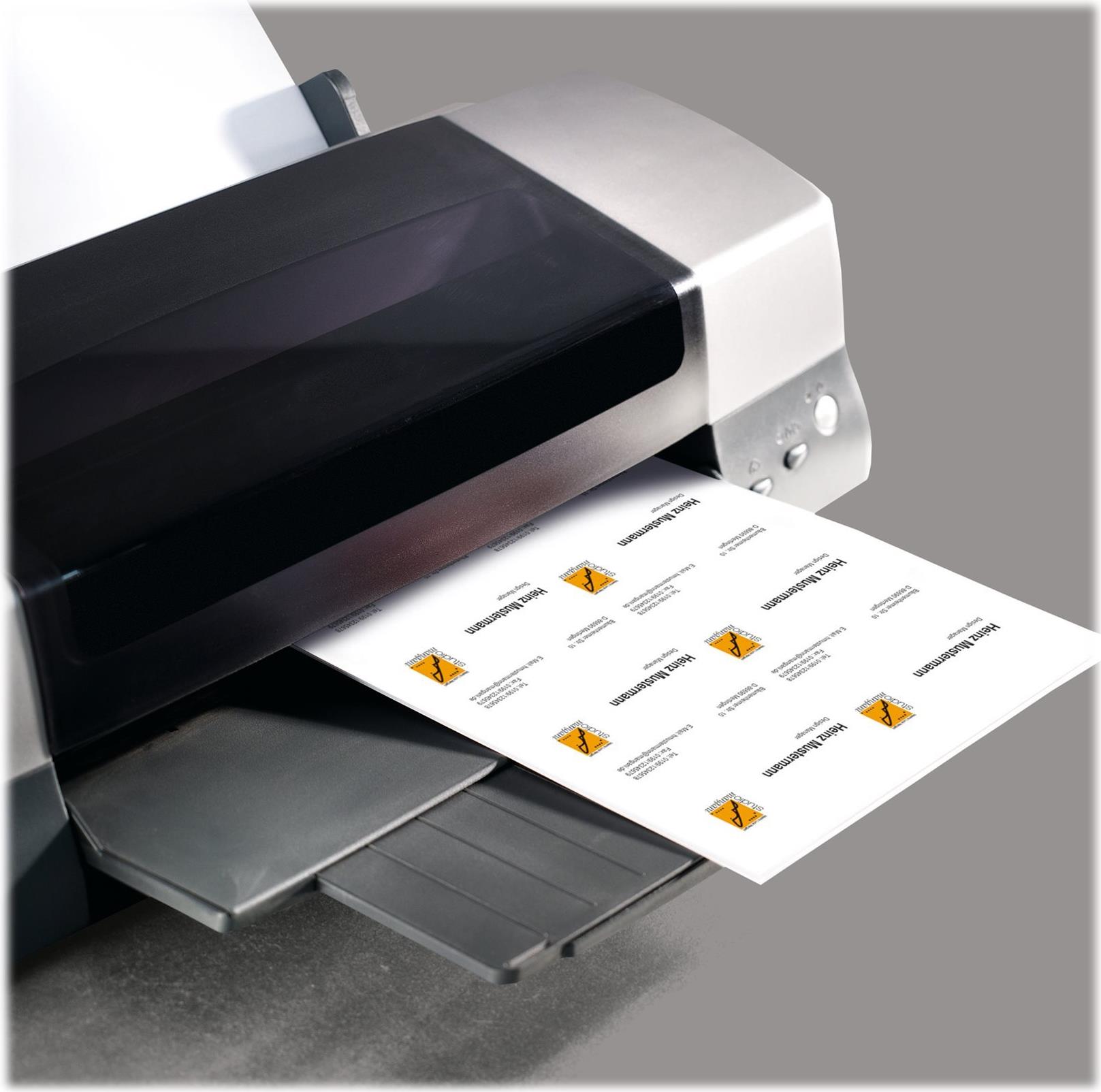PC-Visitenkarten hochweiß, satiniert, mit einer Grammatur von 225 g/m2, FSC -zertifiziert, sind ideal zum schnellen und einfachen Gestalten und Drucken am eigenen PC und Drucker. Einfaches Heraustrennen durch 3C-Technologie: glatter Schnitt rundum ohne Perforation. Die Visitenkarten sind vielseitig einsetzbar beispielsweise für Events, Messen oder geschäftlichen und privaten Kontaktaustausch. Für alle InkJet- und (Farb-)Laser-Drucker sowie Kopierer geeignet. In der Packung sind 40 Blatt DIN A4 bzw. 400 Karten im Format 85x55 mm enthalten.