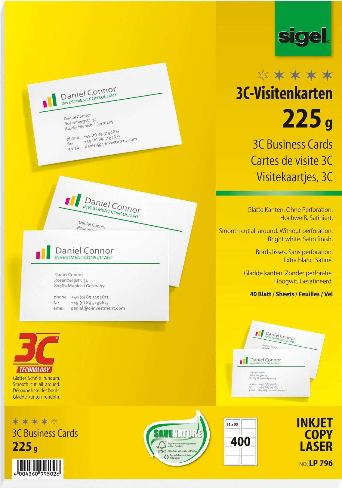 Sigel Business Card 3C LP796 - Visitenkarten - hochweiß - 85 x 55 mm - 225 g/m2 - 400 Karte(n) (40 Bogen x 400) (LP796)