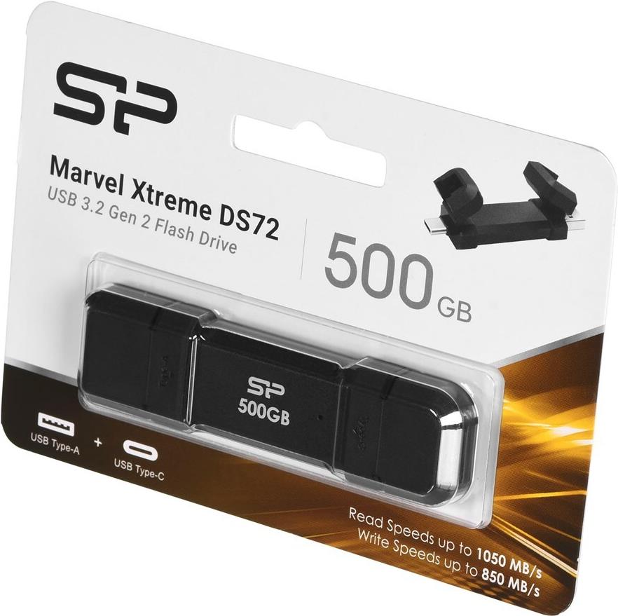 Silicon Power Marvel Xtreme DS72 - USB-Flash-Laufwerk - 500GB - USB 3,1 Gen 2 / USB-C 3,2 Gen 2 - Schwarz (SP500GBUC3S72VPK)