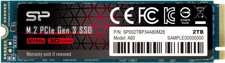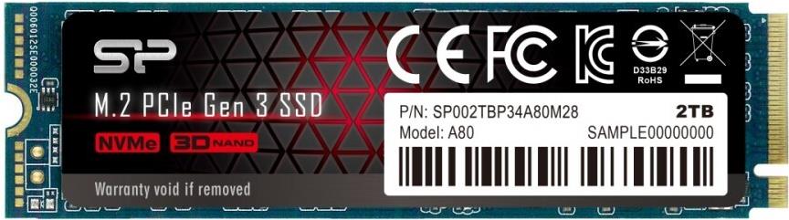 SILICON POWER P34A80 - SSD - 2 TB - intern - M.2 2280 - PCI Express 3.0 x4 (NVMe) (SP002TBP34A80M28)