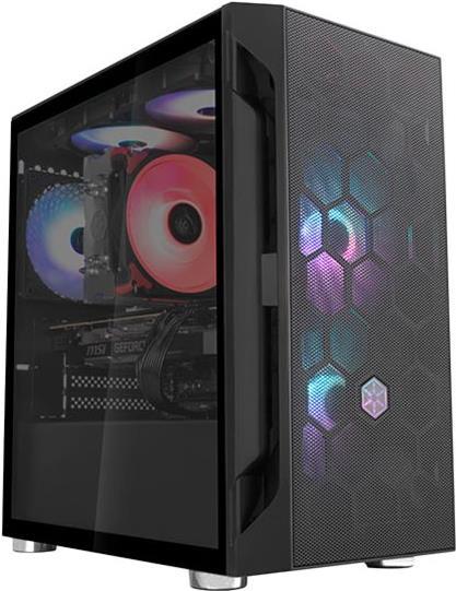 Einzigartiges Design und hohe Kompatibilität des FARA H1 M tragen erheblich zum Nutzwert bei. Seine Frontblende verfügt über ein Bienenwaben-Gitterdesign aus Stahl und RGB-Beleuchtung am SilverStone-Logo; ermöglicht die Installation von zwei 120- oder 140-mm-Lüftern, was ausgezeichnete Luftversorgung zur Kühlung interner Komponenten gewährleistet.