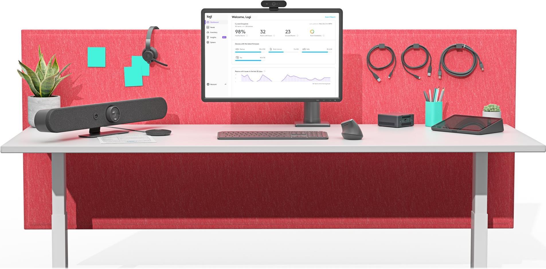 Die Konfiguration für kleine Räume mit Logitech Rally Bar Mini bietet Bild und Ton in hervorragender Qualität in kompakter All-in-one-Form. Übersichtliche Kabelführung und flexible Montageoptionen ermöglichen eine skalierbare Bereitstellung.