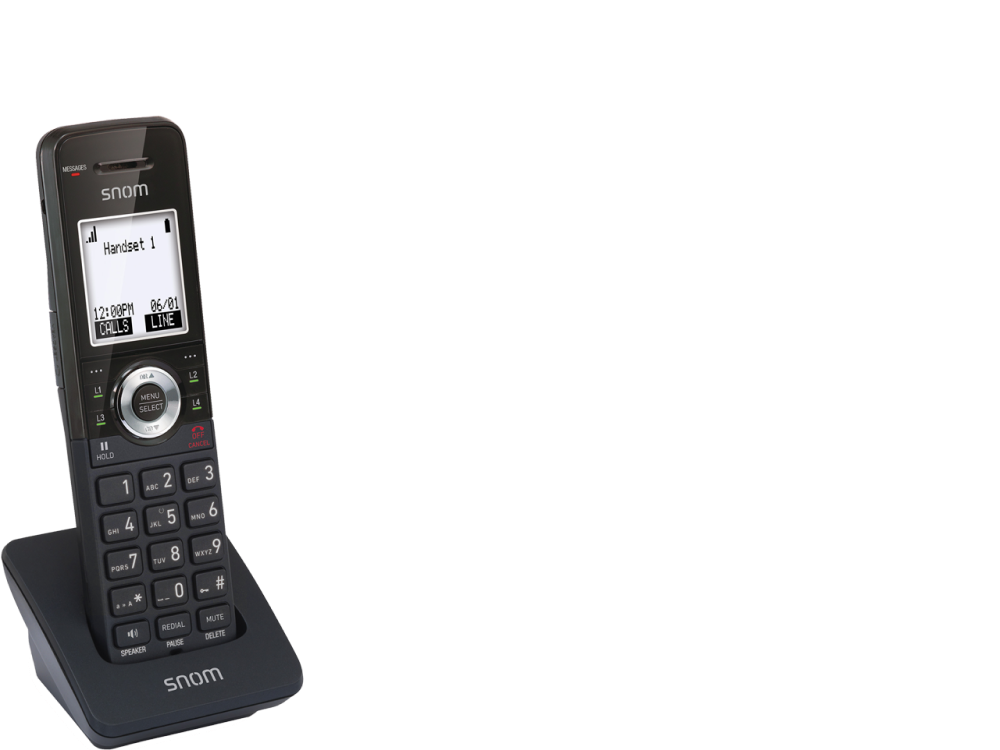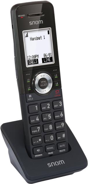 Das snom M10 SC Mobilteil kombiniert elementare Gesprächsfunktionen, wie z.B. das Halten oder Weiterleiten von Anrufen, mit kristallklarer Audioqualität.