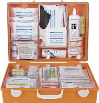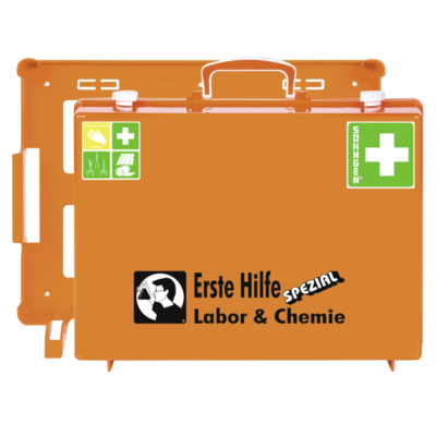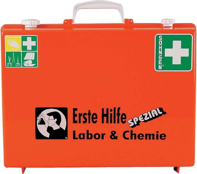 Erste-Hilfe-Koffer SPEZIAL Labor & Chemie für die chemische Industrie, medizinische, technische und chemische Laborbetriebe.Unterschiedliche Gefährdungen erfordern unterschiedliche Ausstattungen. In dieser Spezial-Serie wurden auf Basis der aktuellen DIN-Normen für Betriebsverbandkästen die Inhalte individuell berufsrisikobezogen erweitert und werden somit den unterschiedlichen Anforderungen in Industrie, Handel und Dienstleistung gerecht. Der Erste-Hilfe-Koffer SPEZIAL Baustelle enthält daher ganz andere Inhaltserweiterungen als der Erste-Hilfe-Koffer SPEZIAL Verwaltung.