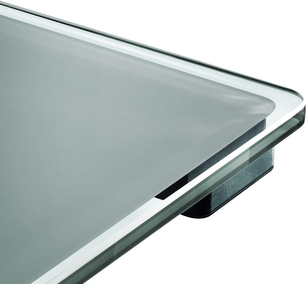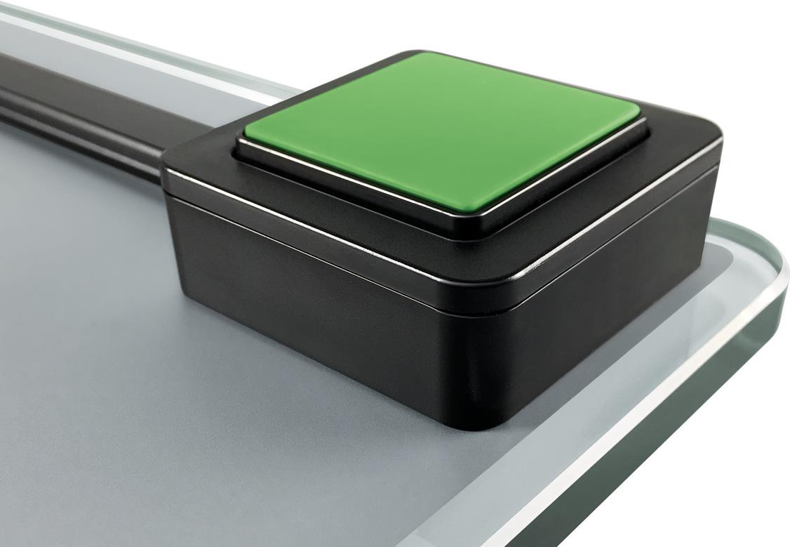 Und natürlich punktet die Waage auch in Sachen Sicherheit: Damit Sie stabil stehen, besteht die extragroße Trittfläche aus besonders starkem Sicherheitsglas und ist mit rutschhemmenden Standfüßen ausgestattet. Auch ein Bücken ist nicht notwendig. Das Display schaltet sich direkt beim Betreten der Waage ein und nach dem Wiegen automatisch wieder aus. So halten die mitgelieferten Batterien selbst bei zweimal täglichem Wiegen bis zu drei Jahre.