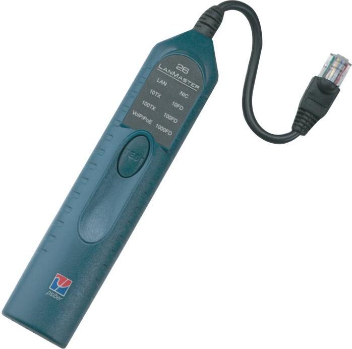 Der LanMaster26 zeigt in sekundenschnelle die jeweiligen Netzwerk-Topologie, wie 10/100/1000MB Ethernet und die Dienste VOIP/PoE (Power over Ethernet) an.Auch wird überprüft in welchem Duplex Mode und ob Auto-Negotiation konfiguriert ist. Zusätzlich identifiziert der LanMaster 26 über die Polarität, ob eine Netzwerkkarte oder ein Switch/Hub oder Router angeschlossen ist.
