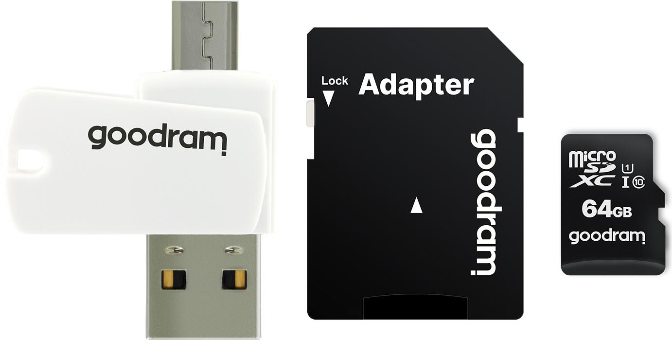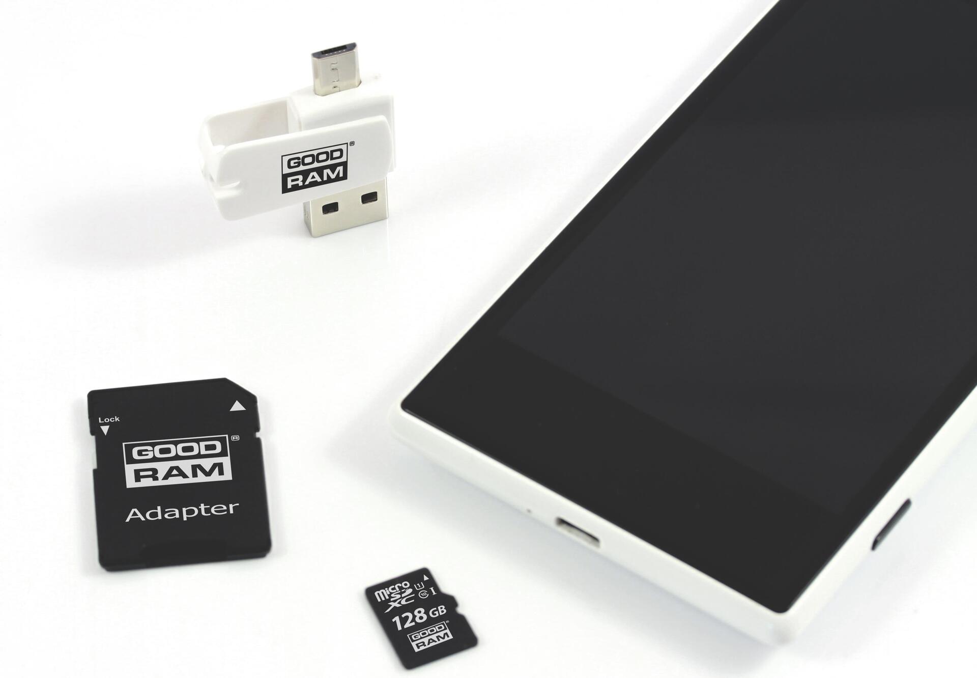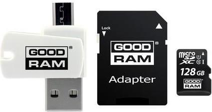 Speicherkarte mit Adapter und GoodRam Alles in einem M1A4-1280R12-Kartenleser (128 GB; Klasse 10; Adapter, MicroSDHC-Kartenleser, Speicherkarte) (M1A4-1280R12)