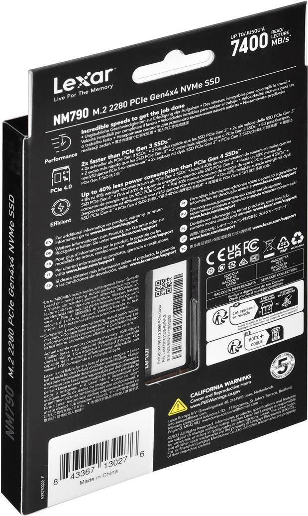 Erschließen Sie neue Speicherkapazitäten mit der internen Solid-State-Festplatte Lexar NM790. Diese SSD wurde für Leistung und Zuverlässigkeit entwickelt, verfügt über einen kompakten M.2 2280-Formfaktor und nutzt die PCI Express 4.0 x4 (NVMe)-Technologie für beeindruckende Datenübertragungsgeschwindigkeiten. Ihr dynamischer SLC-Cache verbessert die Lese- und Schreibeffizienz und macht sie geeignet für anspruchsvolle Anwendungen und Spiele, einschließlich der Kompatibilität mit PS5.