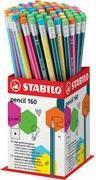 STABILO Bleistift Pencil 160 mit Radierer, 72er Display Härtegrad: HB, farbig lackiert mit weißen Kantenstreifen, - 1 Stück (2160/72-1HB)