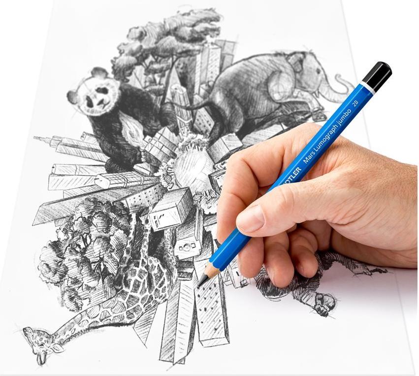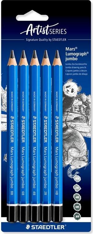 STAEDTLER Bleistift Mars Lumograph jumbo, 5er Blister Sechskantstift, Minenstärke: 5,3 mm, blau lackiert, - 1 Stück (100J-S BK5)