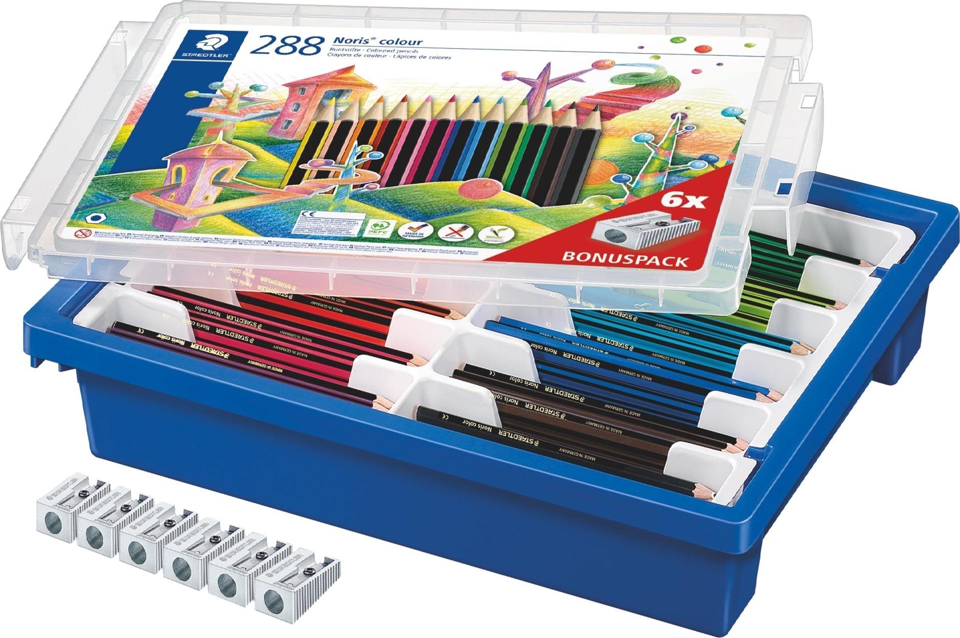 STAEDTLER Buntstift Noris Colour, 288er Kunststoffbox sechseckig, Streifen-Design, ergonomische Soft-Oberfläche, - 1 Stück (185 G288)