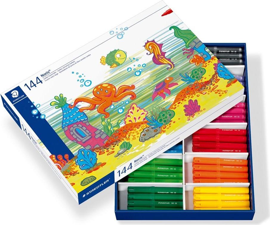STAEDTLER Fasermaler Noris Club jumbo, 144er Schulbox Minenstärke: 3.0 mm, rund, Tinte mit Lebensmittelfarbe, - 1 Stück (340 C144)
