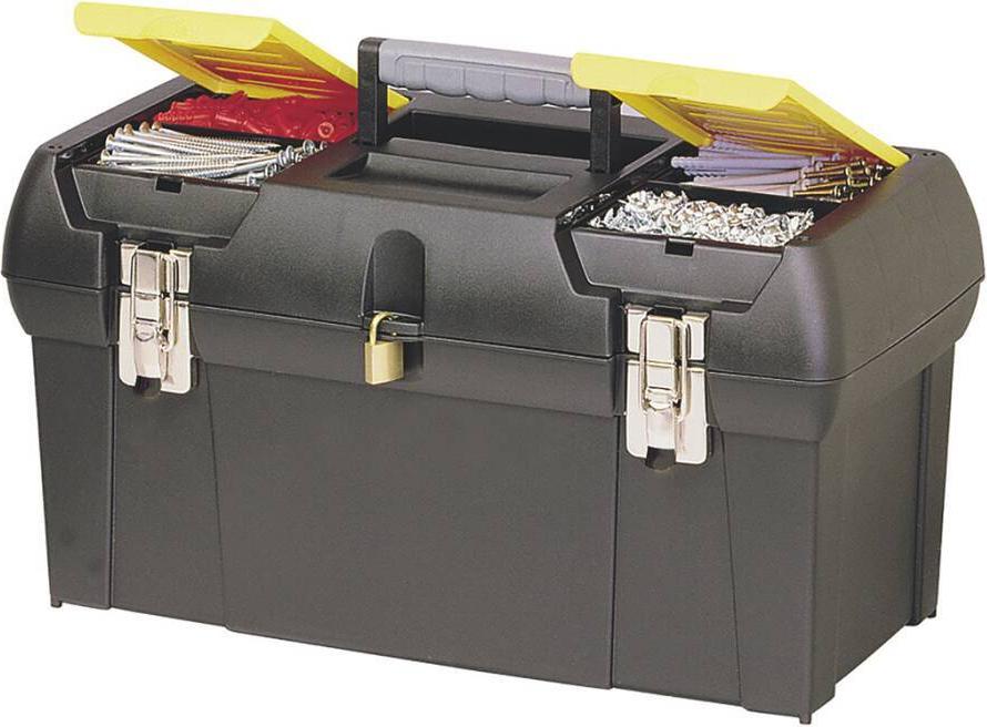 WerkzeugboxAusstattung: Herausnehmbare Ablage2 im Deckel integrierte OrganizerMetallschließenKomfortgriff.Technische Daten: Herstellerfarbe: Schwarz,GelbProdukt-Art: WerkzeugboxProduktabmessung, Brei