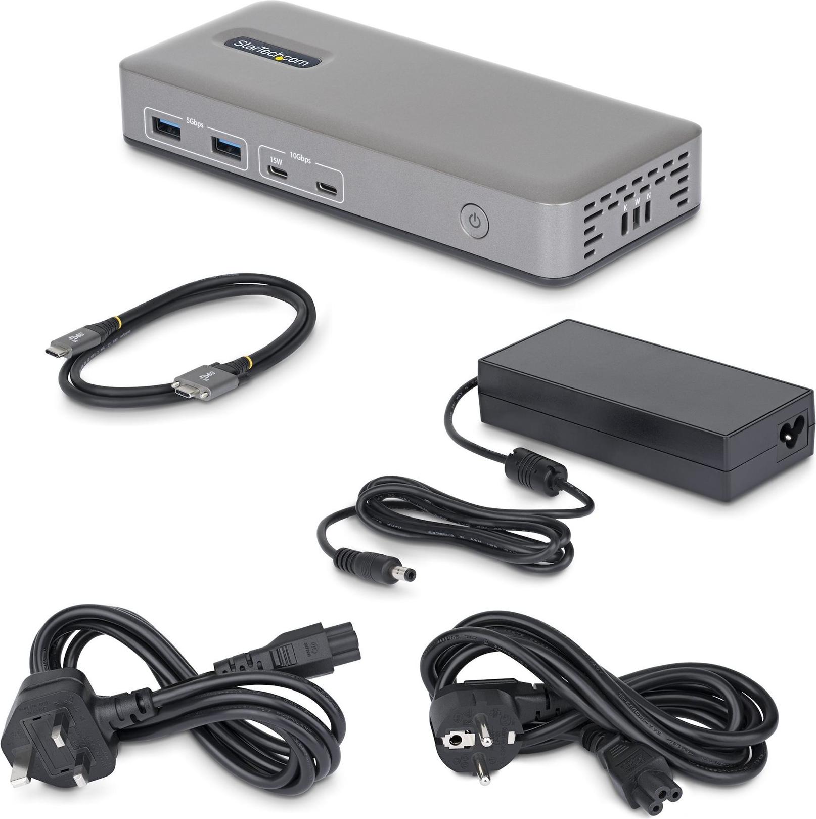 Schließen Sie bis zu drei 4K 60Hz Displays (2× DisplayPort und 1× HDMI) über einen einzigen USB-C Port an und nutzen Sie zusätzlich USB-C, USB-A sowie Gigabit Ethernet Konnektivität. Unkomprimiertes Video über USB-C Verbinden Sie bis zu drei 4K 60Hz Displays über einen einzelnen USB Typ-C Port mit einem unkomprimierten Videosignal, das direkt von der nativen GPU Ihres Laptops bereitgestellt wird. Ideal für anspruchsvolle Workflows mit leistungsstarker Bilddarstellung ganz ohne Software Kompression. Treiberlose Bereitstellung Unterstützt Plug-and-Play unter Windows ohne Treiber oder zusätzliche Software*. Entwickelt für skalierbare Zero Touch Rollouts in Shared Workspaces, Unternehmensumgebungen und BYOD Deployments. Flexible High Speed I/O Die Dockingstation ist mit 4× USB-A Ports mit 5 Gbps sowie 2× USB-C Ports mit 10 Gbps ausgestattet, davon einer mit 15W Power Delivery. Sie unterstützt sowohl ältere Peripheriegeräte als auch moderne Geräte mit hohem Datendurchsatz ohne Leistungseinbußen. Ein Gigabit Ethernet Port sorgt für eine zuverlässige kabelgebundene Netzwerkverbindung. Montage und Sicherheit Diese Multi Monitor Dockingstation verfügt über integrierte Lock Slots für erhöhte physische Sicherheit und unterstützt Oberflächen- oder VESA-Montage, um das Dock sicher und platzsparend zu installieren. Montagezubehör ist separat erhältlich (SSPMSUDWM, DOCK-NUC-VESA-MOUNT, SSPMSVESA). *Hinweis: Nicht kompatibel mit macOS oder ChromeOS.