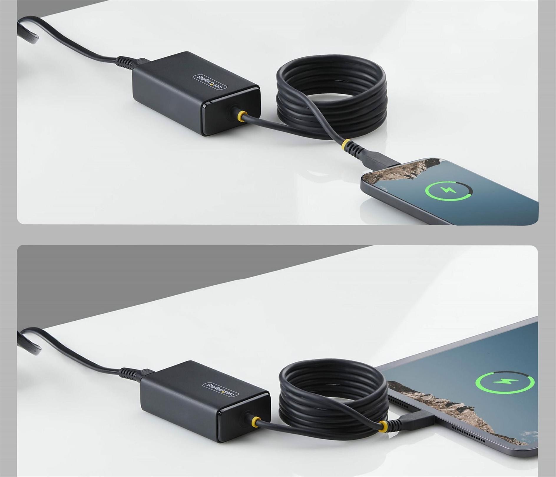 Leistungsstarkes und schnelles USB-C Laden Dieses USB-C Netzteil liefert bis zu 65W Power Delivery 3.0/2.0 Leistung mit breiter Spannungsunterstützung (5V, 9V, 12V, 15V, 20V). Damit lassen sich verschiedenste Geräte schnell und sicher aufladen und mehrere Ladegeräte durch eine zuverlässige Lösung ersetzen. Universelle Kompatibilität mit führenden Marken Ausgelegt für gängige USB Type-C Geräte wie Dell Pro und Plus, HP, HP ProBook, MacBook Pro sowie Microsoft Surface Pro. Das Ladegerät wird mit einem 1,8m Netzkabel und einem fest angeschlossenen 1,5m USB-C Kabel geliefert und bietet damit ausreichend Reichweite sowie jederzeit zuverlässige Stromversorgung, ideal für mobiles oder hybrides Arbeiten. Sichere, zuverlässige und effiziente Leistung Zum Schutz von Anwendern und Geräten ist das Netzteil ETL Safety Listed nach IEC 62368-1 und CE, FCC sowie ICES EMC zertifiziert. Es verfügt über Schutz gegen Überspannung, Überstrom und Übertemperatur. Das effiziente Design erfüllt die Anforderungen von DOE Level VI für Energieeffizienz. Umweltfreundliche Verpackung mit reduziertem Kunststoffanteil Die Verpackung wurde mit Fokus auf Nachhaltigkeit entwickelt. Die recycelbare braune Kartonverpackung reduziert die Umweltbelastung und ist kompakt ausgeführt, um Bewegungen oder Beschädigungen des Produkts während des Transports zu vermeiden.