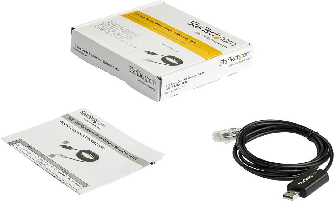 StarTech.com 1,8 m Cisco Console Cable USB to RJ45- Rollover Kabel - Windows, Mac und Linux - St/St (ICUSBROLLOVR) - Kabel seriell - 1.8 m - Schwarz