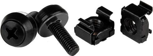 | Produktbeschreibung | StarTech.com 50 Stück 10-32 Server Rack Käfigmuttern und Schrauben mit Unterlegscheiben - Rack Montagematerial - Clip/Muttern und Schrauben für quadratische Löcher - Schwarz - TAA (CABSCREW1032) - Schrauben für Rack |