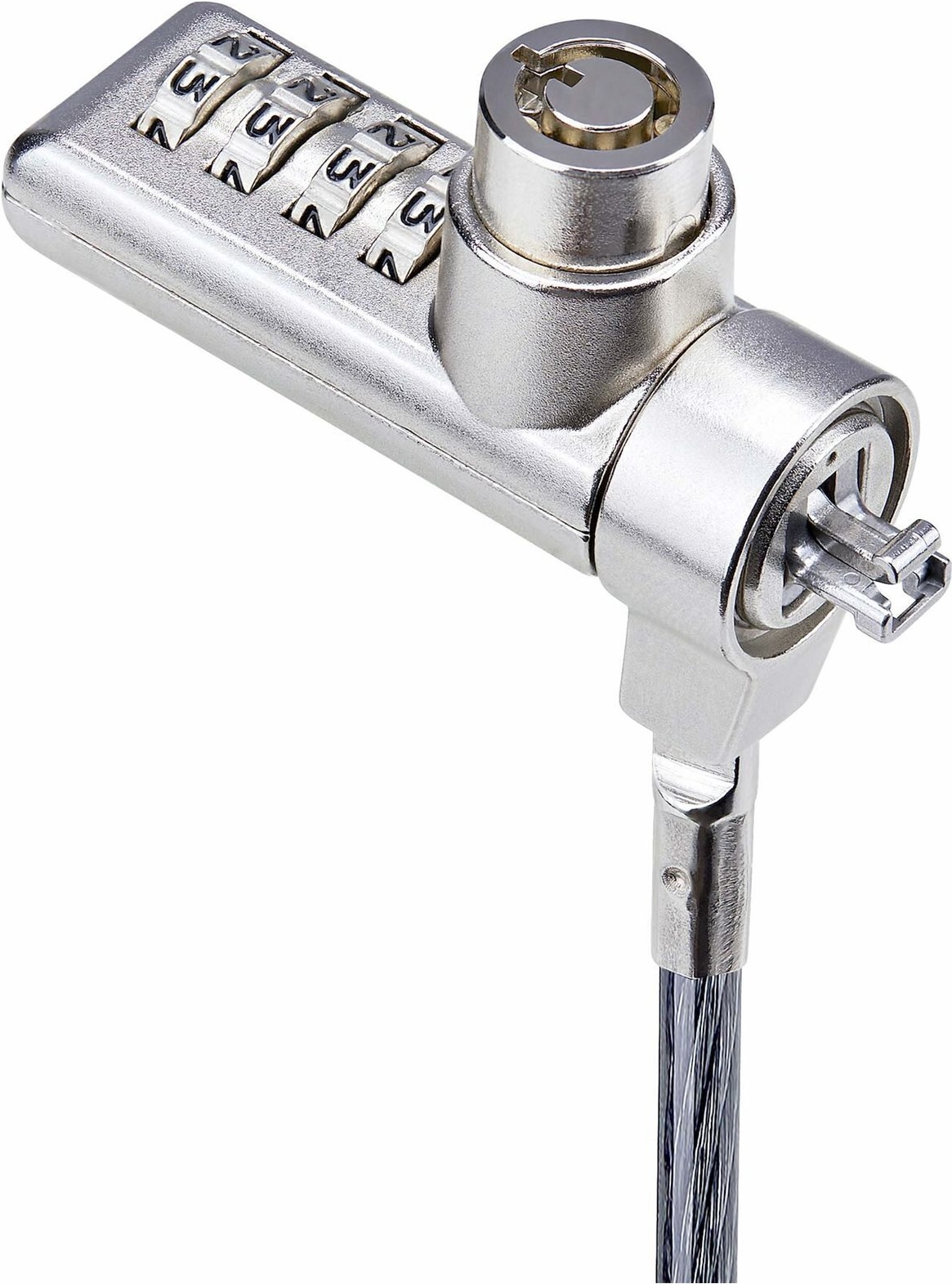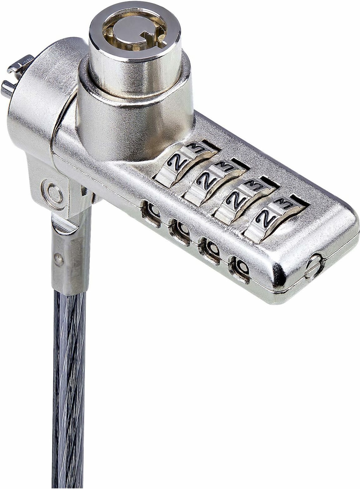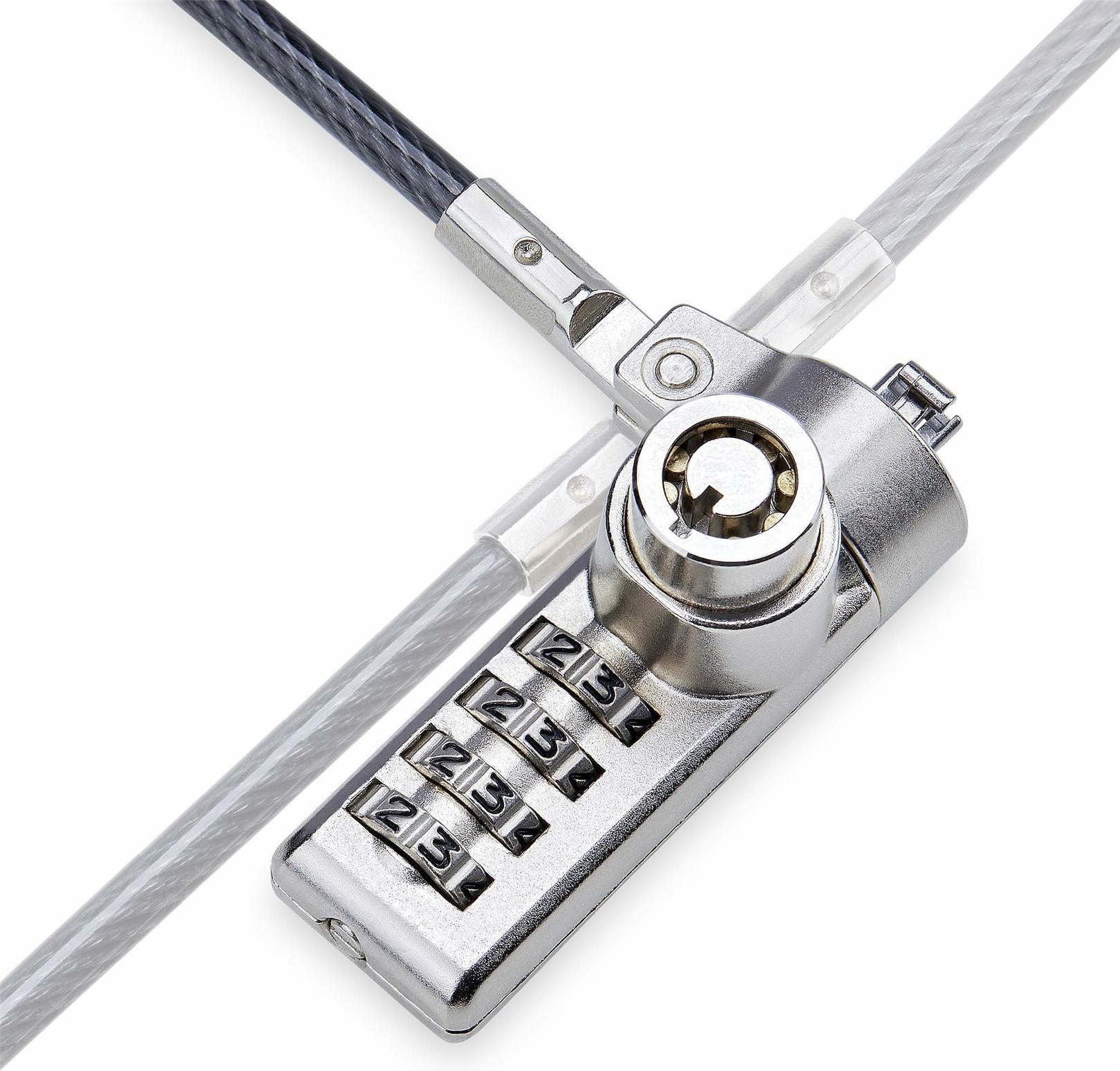 Sichern Sie einen Laptop, eine Dockingstation oder andere Peripheriegeräte mit diesem Kabelschloss mit zwei Schließmechanismen