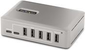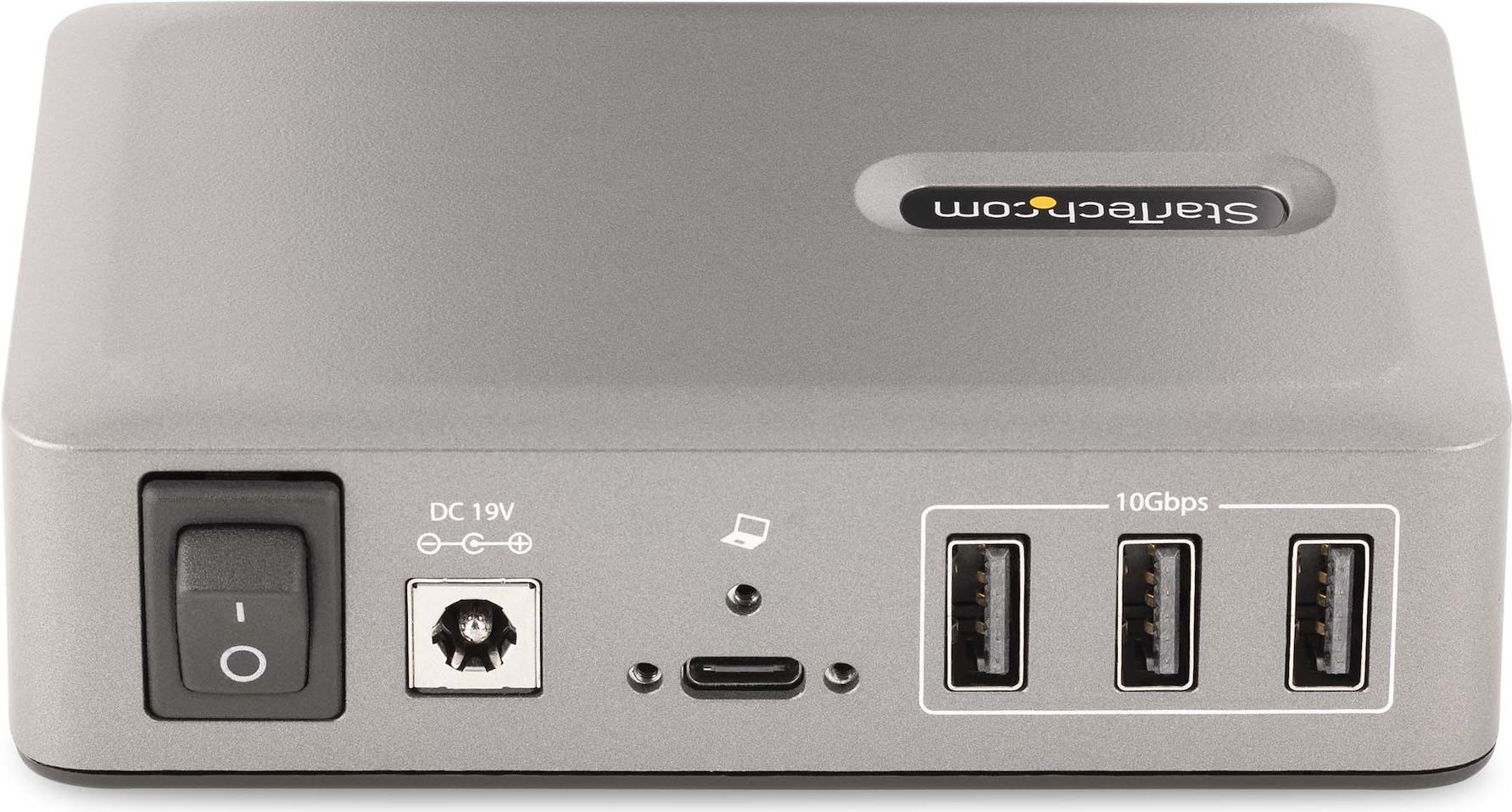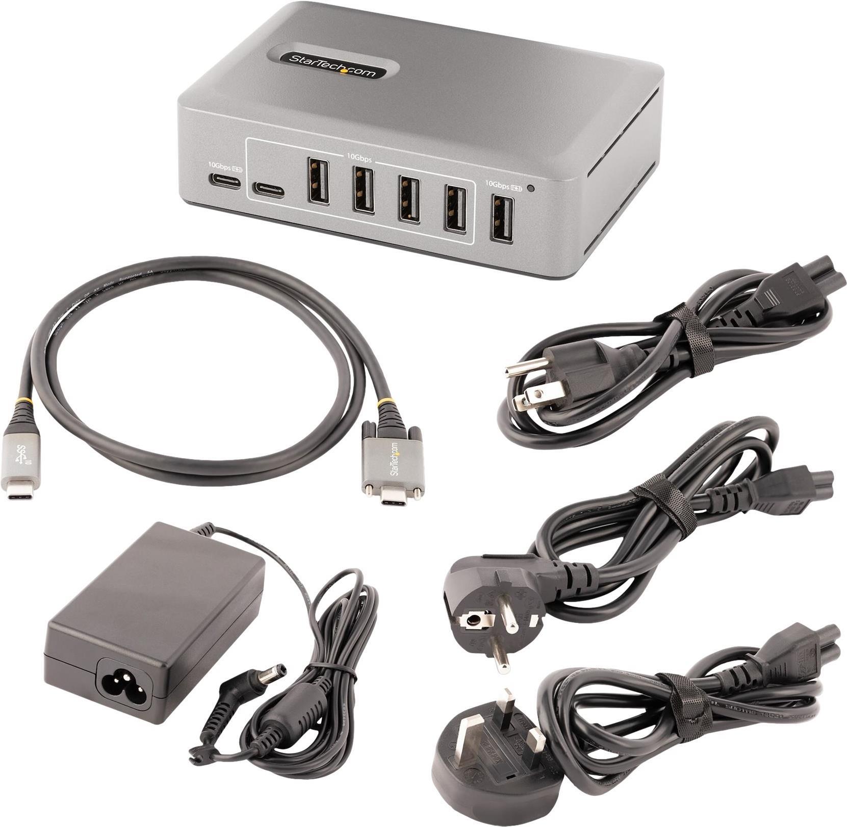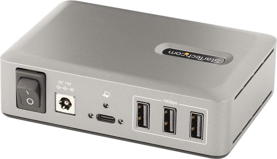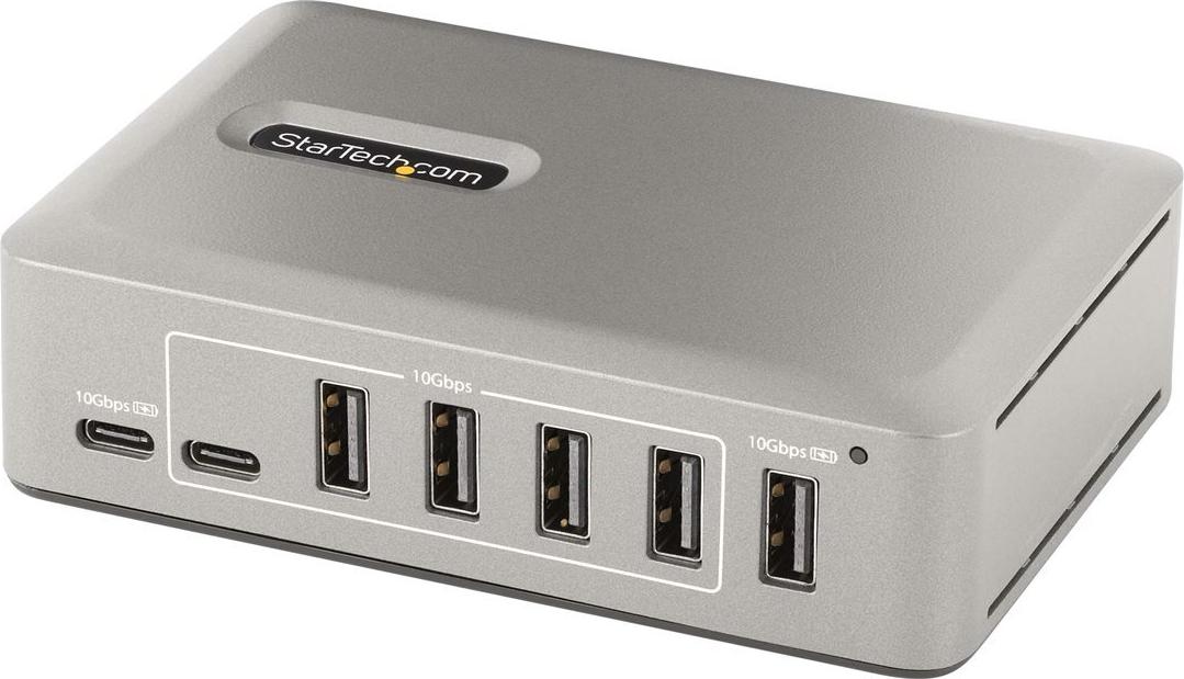 Fügen Sie mit diesem USB-C Hub zehn USB 3.2 Gen 2 (10 Gbit/s) Anschlüsse (8x USB-A, 2x USB-C) zu einem USB-C Computer hinzu. Der USB Hub ist stromversorgt mit einem enthaltenen Stromversorgung Adapter. Der USB Hub hat eine OCP-Funktion (OCP Funktion). Die OCP-Funktion hilft dabei, Peripheriegeräte vor zu hoher Stromversorgung zu hindern, um USB-Geräteausfälle zu vermeiden und die Computer vor einem unerwarteten Abschalten zu bewahren. Die Unterstützung für Wake On USB ermöglicht die USB-Kommunikation von Geräten, die an den Hub angeschlossen sind, um den Computer aus dem Standby- oder anderen Energiespar-/Ruhemodus zu holen.Produkttext[/head]Verwandeln Sie einen USB Typ-C Anschluss an Ihrem Computer mithilfe dieses USB Hubs in acht USB Typ-A Anschlüsse (10Gbit/s) und zwei USB Typ-C Anschlüsse (10Gbit/s).Fügen Sie mit diesem USB-C Hub zehn USB 3.2 Gen 2 (10 Gbit/s) Anschlüsse (8x USB-A, 2x USB-C) zu einem USB-C Computer hinzu. Der USB Hub ist stromversorgt mit einem enthaltenen Stromversorgung Adapter. Der USB Hub hat eine OCP-Funktion (OCP Funktion). Die OCP-Funktion hilft dabei, Peripheriegeräte vor zu hoher Stromversorgung zu hindern, um USB-Geräteausfälle zu vermeiden und die Computer vor einem unerwarteten Abschalten zu bewahren. Die Unterstützung für Wake On USB ermöglicht die USB-Kommunikation von Geräten, die an den Hub angeschlossen sind, um den Computer aus dem Standby- oder anderen Energiespar-/Ruhemodus zu holen.High Performance USB 3.2 Gen 2 (10Gbit/s) HubDer USB Hub teilt sich 10 Gbit/s vom USB Host Gerät und erlaubt so Hochgeschwindigkeitsdatenübertragungen für Hochleistungsanwendungen. Der USB Hub ist rückwärtskompatibel mit früheren USB Versionen, inklusive USB 3.2 Gen 1 (5 Gbit/s), USB 2.0 (480 Mbit/s) und USB 1.1 (12 Mbit/s). Er hat acht USB-A Anschlüsse und zwei USB-C Anschlüsse. Diese Kombination von Anschlüssen ermöglicht die Aufnahme einer breiten Palette von modernen und älteren USB Geräten, wie z.B. externe Speichergeräte (z.B. Stick, HDDs/SSDs), HD-Kameras (z.B. Webcams), Mäuse, Tastaturen und USB Headsets.Stromversorgung und Aufladen von USB GerätenDer USB Hub ist stromversorgt und wird über einen 65 W Adapter betrieben. Der Hub verfügt über zwei USB BC 1.2 Anschlüsse (1x USB-A, 1x USB-C), die jeweils eine Leistung von 2,4 A (12 W) gleichzeitig bereitstellen und somit ideal zum Laden von batteriebetriebenen USB-Geräten wie Smartphones und Tablets geeignet sind und gleichzeitig eine Datenverbindung herstellen. Diese Anschlüsse bieten Stromversorgung mit oder ohne angeschlossenen Host Computer, mit Unterstützung für CDP (Charging Downstream Port) & DCP (Dedicated Charging Port) Anwendungen. Der Hub verfügt über sieben USB-A und einen USB-C Anschluss, die jeweils eine Stromversorgung von 0,9 A (4,5 W) nach dem USB 3.2 Standard bieten. Der enthaltene Adapter sorgt dafür, dass alle Anschlüsse immer die angegebene Stromversorgung bieten, unabhängig davon, wie viele Geräte angeschlossen sind.USB-IF zertifiziertes Host KabelEin hochwertiges USB-IF zertifiziertes USB-C Host Kabel ist enthalten. Das Kabel verfügt über eine Schraubenverriegelung, um einen sicheren und zuverlässigen Anschluss an den USB Hub zu gewährleisten. Der Mantel des Kabels aus Thermoplastischem Elastomer (TPE) ist weicher und flexibler als Kabel mit PVC-Mantel.Plug-and-Play InstallationDer 10-Port USB Hub ist OS-unabhängig und unterstützt alle Betriebssysteme, inklusive Windows, macOS, ChromeOS, iPadOS und Android. Die Installation erfolgt automatisch beim Anschluss an einen Host Computer.Befestigen Sie den USB Hub an einer Wand-, Tisch- oder VESA-Montage mit StarTech.com Hub-Halterungen: SSPMSVESA oder SSPMSUDWM.Produktivitätssteigerung und Gerätemanagement mit der StarTech.com Connectivity Tools SoftwareStarTech.com Connectivity Tools wurde entwickelt, um die Leistung und Sicherheit zu steigern, und ist die einzige Software Suite auf dem Markt, die mit einer umfangreichen Auswahl an IT-Anschlusszubehörprodukten kompatibel ist. Die anwendbare Software für dieses Produkt ist das USB Events Utility (Hilfsprogramm zur Überwachung von USB-Ereignissen). Mit diesem Hilfsprogramm können Sie alle angeschlossenen USB Geräte verfolgen und protokollieren.Weitere Informationen und die Software StarTech.com Connectivity Tools können Sie hier herunterladen: www.StarTech.com/connectivity-toolsDieses Produkt wird 2 Jahre lang von StarTech.com unterstützt, inklusive eines lebenslangen, kostenlosen, mehrsprachigen technischen Kundendienstes.The StarTech.com Advantage[head]Hauptmerkmale