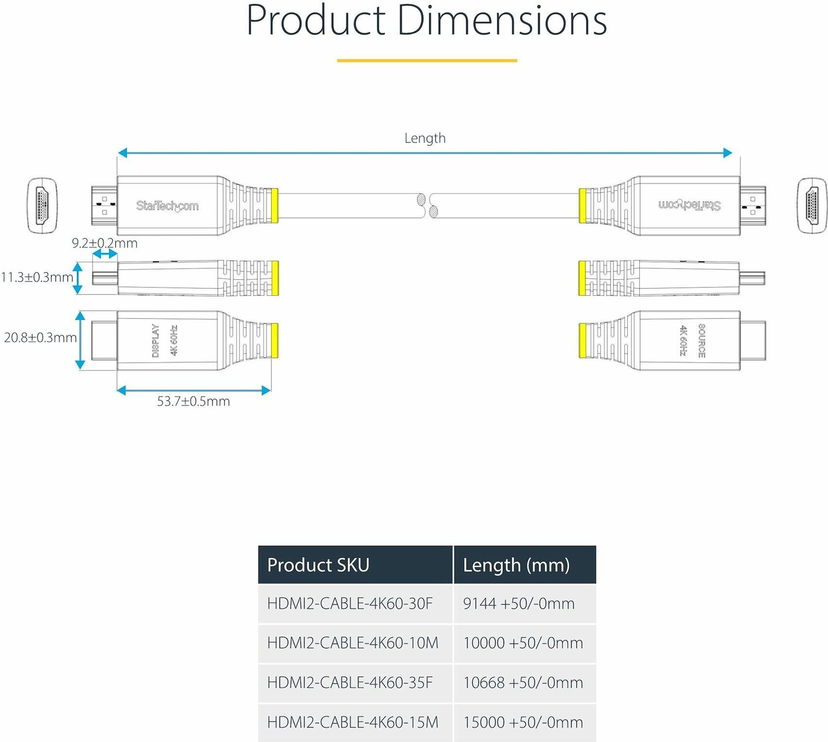 • StarTech.com 10m (32.8ft) Active High Speed HDMI Cable, 4K60Hz (HDMI2-CABLE-4K60-10M)