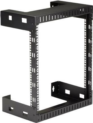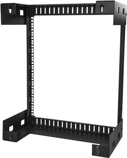 Dieses Rack mit offenem Rahmen für die Wandmontage bietet 12 HE Platz, sodass Sie Platz sparen und organisiert bleiben.