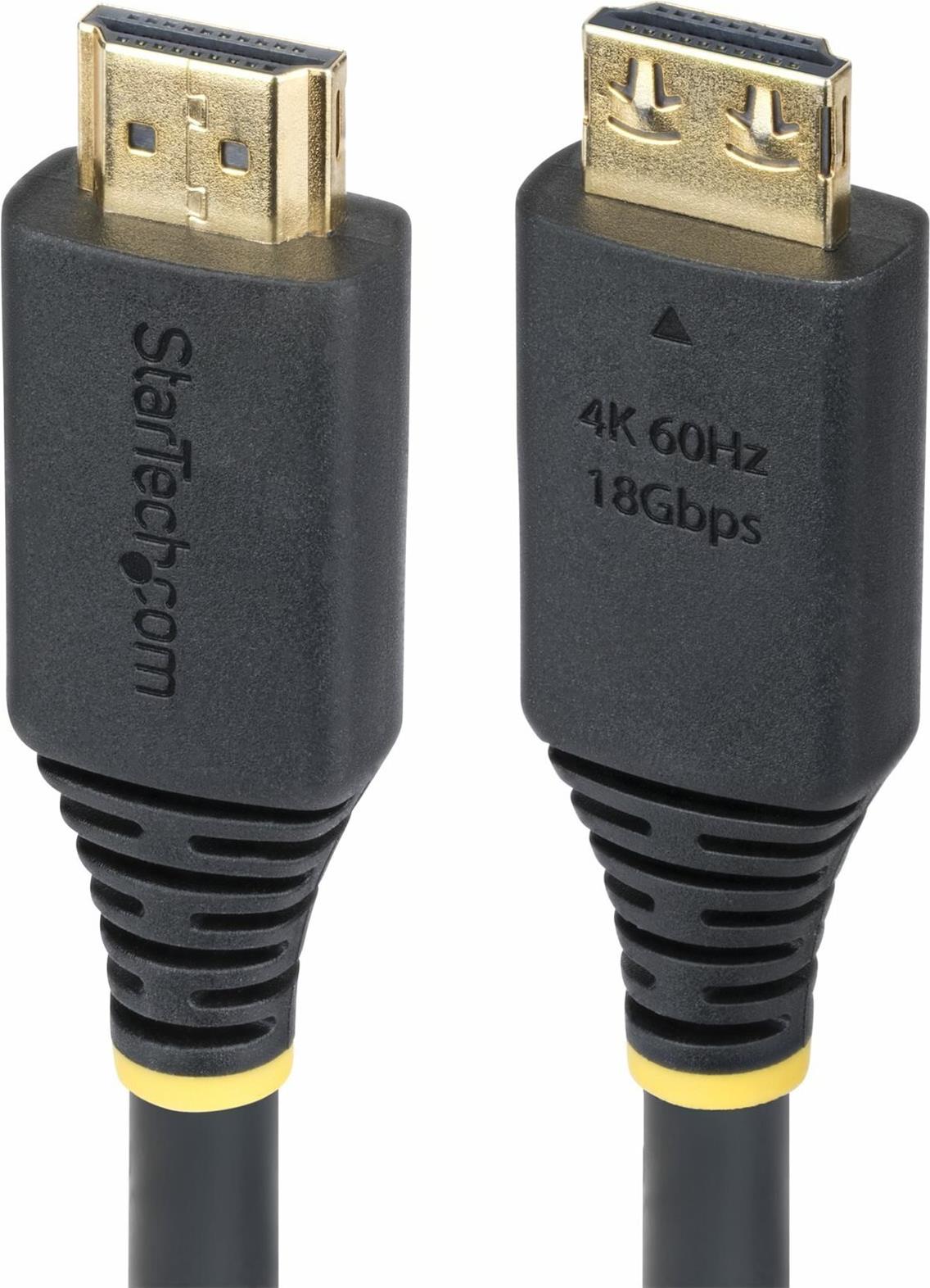 Das 4,5 m lange High-Speed-HDMI-Kabel mit Griffsteckern von StarTech.com bietet zuverlässige Verbindungen für Audio- und Videogeräte. Dieses abgeschirmte HDMI-Kabel unterstützt eine Datenrate von 18 Gbit/s und ermöglicht damit nahtlose 4K-Auflösungen mit 60 Hz sowie 1080p mit 240 Hz und 2K mit 144 Hz. Das Kabel ist auf Langlebigkeit ausgelegt und hat eine Lebensdauer von 10.000 Steckvorgängen und 2.000 Biegungen, sodass es in verschiedenen Umgebungen, sei es für Monitore oder Fernseher, lange Zeit verwendet werden kann.
