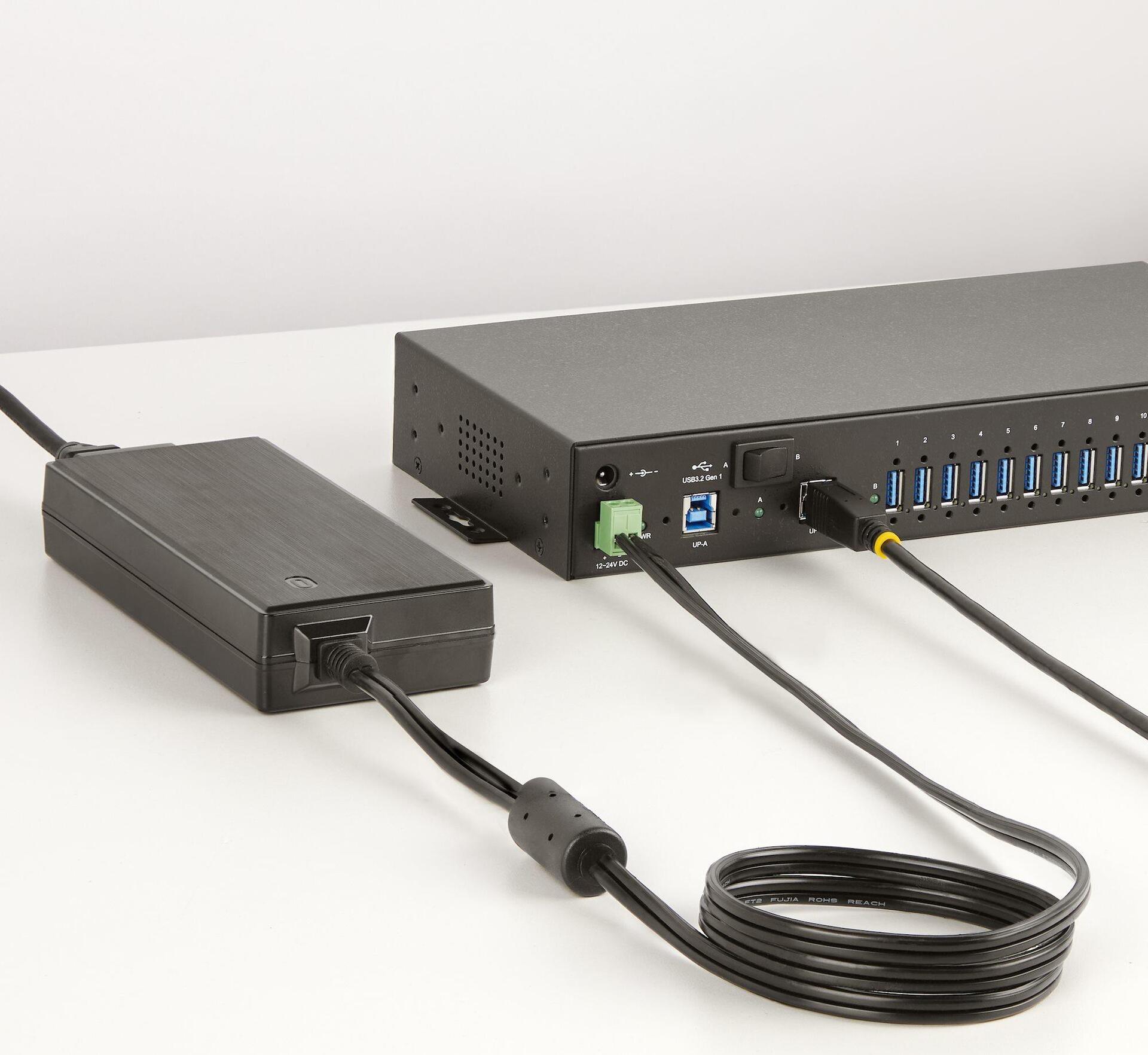 AC/DC-Netzteil für gleichstrombetriebene Industrieprodukte von StarTech.com Versorgen Sie einen StarTech.com Industrial USB Hub oder ein anderes Gerät mit einem 2- oder 3-Draht-Klemmenblock-Gleichstromeingang mit diesem 24V Universellen Stromadapter. Hochleistungsfähiger Universal-Netzteiladapter Der Stromadapter verfügt über einen automatisch umschaltenden 100-240V AC-Eingang mit einem 24V/6,6A (158,4W) DC-Ausgang und einem beigefügten 1,2m DC-Kabel. Vier 1,2m regionale Stromkabel sind im Lieferumfang enthalten, um internationalen Support zu gewährleisten: • Nordamerika - Typ-A NEMA 1-15 • Vereinigtes Königreich - Typ-G BS 1363 • Europa - CEE 7/7 • Australien/Neuseeland - Typ-I AS 3112 Gerätekompatibilität Der Power Adapter verfügt über zwei offene Kabel mit 2-Leiter- und 3-Leiter-Klemmenanschlüssen, die eine nahtlose Integration mit einer Vielzahl von Geräten ermöglichen. Dieses Netzteil kann als Zubehör und primäre Stromquelle für viele StarTech.com Industrial USB Hubs verwendet werden, wie z.B.: • 16-Port Industrie USB 5Gbps Hub (5G16AINDS-USB-A-HUB) • 10-Port Industrie USB 5Gbps Hub (ST1030USBM) • 7-Port Industrie USB 5Gbps Hub (ST7300USBME) • 7-Port Industrie USB 2.0 (480Mbps) Hub (HB20A7AME) • 7-Port Industrie USB 2.0 (480Mbps) Hub mit erweitertem Temperaturbereich (ST7200USBM) • 4-Port Industrie USB 2.0 (480Mbps) Hub mit erweitertem Temperaturbereich (HB20A4AME) • 4-Port Industrie USB 2.0 (480Mbps) Hub (ST4200USBM) Dieses Netzteil kann auch als Ersatz für ein verlorenes oder defektes Netzteil verwendet werden oder als redundanter Backup-Strombaustein für unternehmenskritische Anwendungen für StarTech.com Industrial USB Hubs, die ein Netzteil enthalten, wie z.B.: • 10-Port USB 5Gbps Industrie Hub (HB30A10AME) • 7-Port USB 5Gbps Industrie Hub (HB30A7AME) • 4-Port Industrie USB 5Gbps Hub (ST4300USBM).