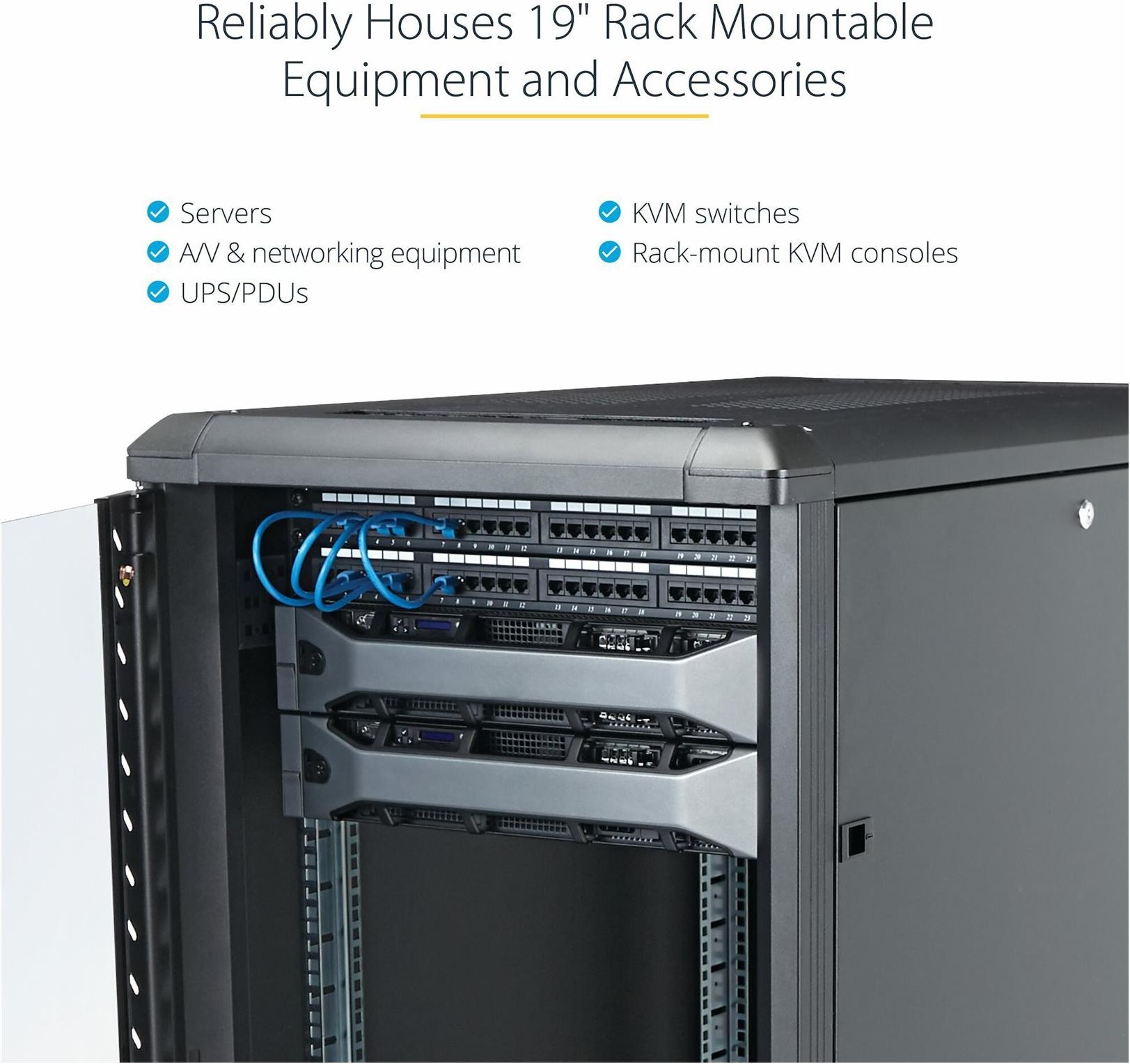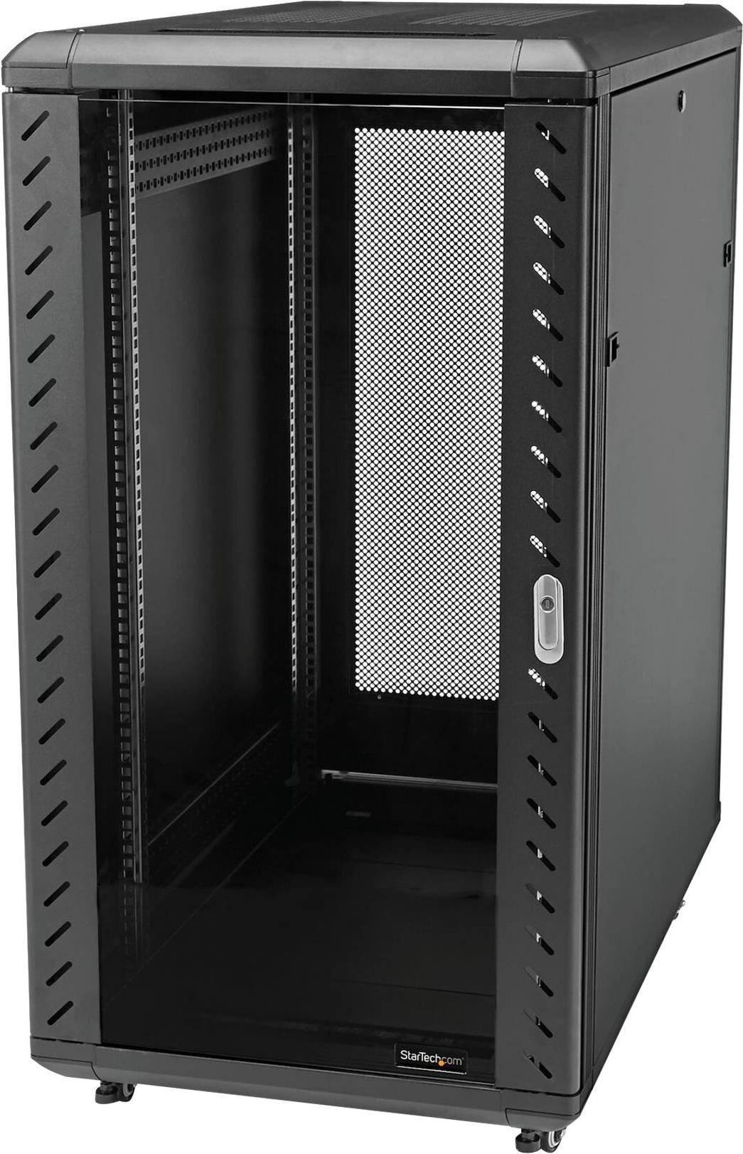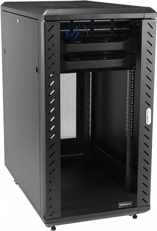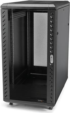 Knock Down(Flat pack)Serverschrank - EIA-310 - 4 Pfosten - Traglast 800 kg - AbschließbarDieses Serverrack bietet 18 HE an Platz in einem stylischen, sicheren Schrank für EIA-310-kompatible 19\"-Rackmontage-Geräte wie z. B. Dell-, HP- und IBM-Server sowie TK-, AV- und IT-Geräte.Problemloser Einbau von GerätenDieses Server-Rack wurde mit verschiedenen Merkmalen konzipiert, die den Einbau sehr vieler Geräte ganz einfach machen. Durch einstellbare Montageschienen können Sie die Tiefe der Schienen leicht auf bis zu 813 mm ändern .Sicherer Schutz Ihrer GeräteDamit Sie Ihre Geräte sicher verschließen; aber trotzdem noch vollständig sehen können; ist dieses Rack mit einem stylischen Glasfenster an der Vordertür ausgestattet. Das Server-Rack mit Glastür verfügt außerdem über abnehmbare Seitenwände mit unabhängigem Schloss und Schnellentriegelungsmechanismen, mit denen Sie problemlos auf Ihre Netzwerkgeräte zugreifen können.Maximale ManövrierfähigkeitDas Server-Rack steht auf Rollen, wodurch ein problemloser Zugang zu den rückseitig montierten Geräten ermöglicht wird und er zudem leicht im Büro oder Serverraum verschoben werden kann. Sobald sich das Gehäuse des Netzwerkgeräts am vorgesehenen Standort befindet, können Sie es mithilfe der integrierten Nivellierfüße bei Bodenanwendungen stabilisieren.Die erste Wahl von IT-Profis seit 1985Bei StarTech.com führen wir umfassende Kompatibilitäts- und Leistungstests für alle unsere Produkte durch, um sicherzustellen, dass wir die Branchenstandards erfüllen oder übertreffen und IT-Profis qualitativ hochwertige Produkte anbieten. Unsere lokalen technischen Berater von StarTech.com verfügen über umfassende Produktkenntnisse und arbeiten direkt mit unseren Ingenieuren von StarTech.com zusammen, um unsere Kunden sowohl vor als auch nach dem Verkauf zu unterstützen.