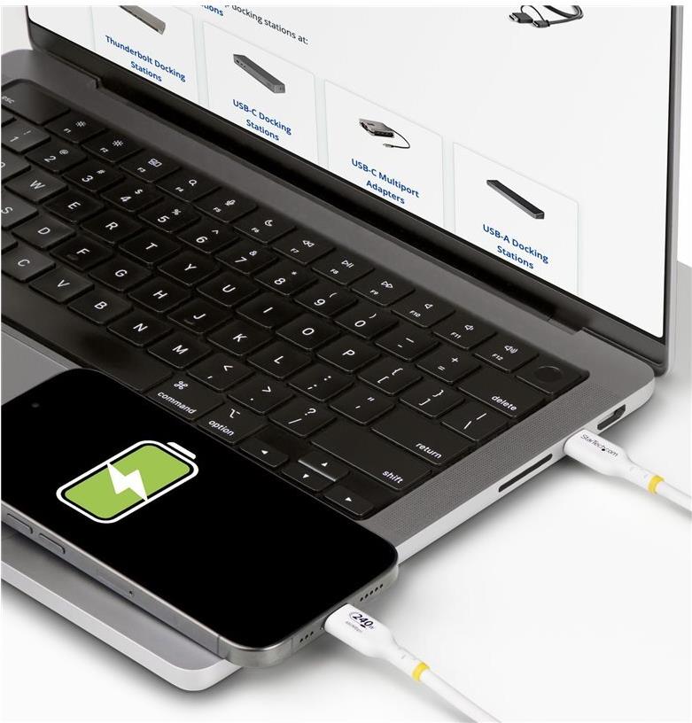 StarTech.com 1,0mUSB C Charging Cable, USB-IF Certified USB-C Cable, 240W - USB-Kabel - 24 pin USB-C (M) zu 24 pin USB-C (M) - USB 2,0 5 A - 1,0m - USB-Stromversorgung (240 W), Baureihe mit erweitertem Leistungsbereich (EPR, unterstützt Power Delivery 3,1, halogenfrei, passiv - weiß (USB2EPR1MW)