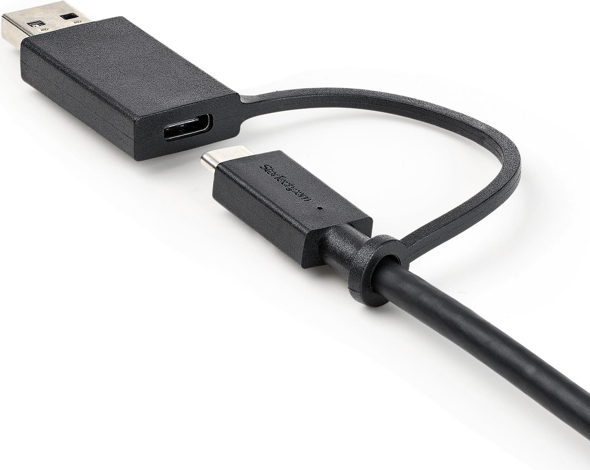 StarTech.com 3ft (1m) USB C Cable w/ USB-A Adapter Dongle, Hybrid 2-in-1 USB C Cable w/ USB-A | USB-C to USB-C (10Gbps/100W PD), USB-A to USB-C (5Gbps), USB-A Host to USB-C DisplayLink Dock - Ideal for Hybrid Dock (USBCCADP) - USB-Kabel - USB-C (M) bis USB-C (M) - 1 m - USB-Stromversorgung (100 W)