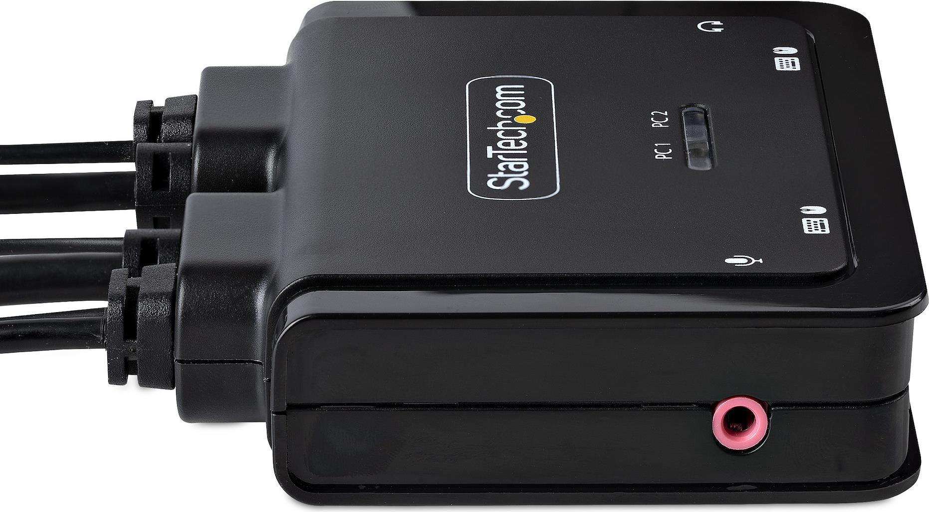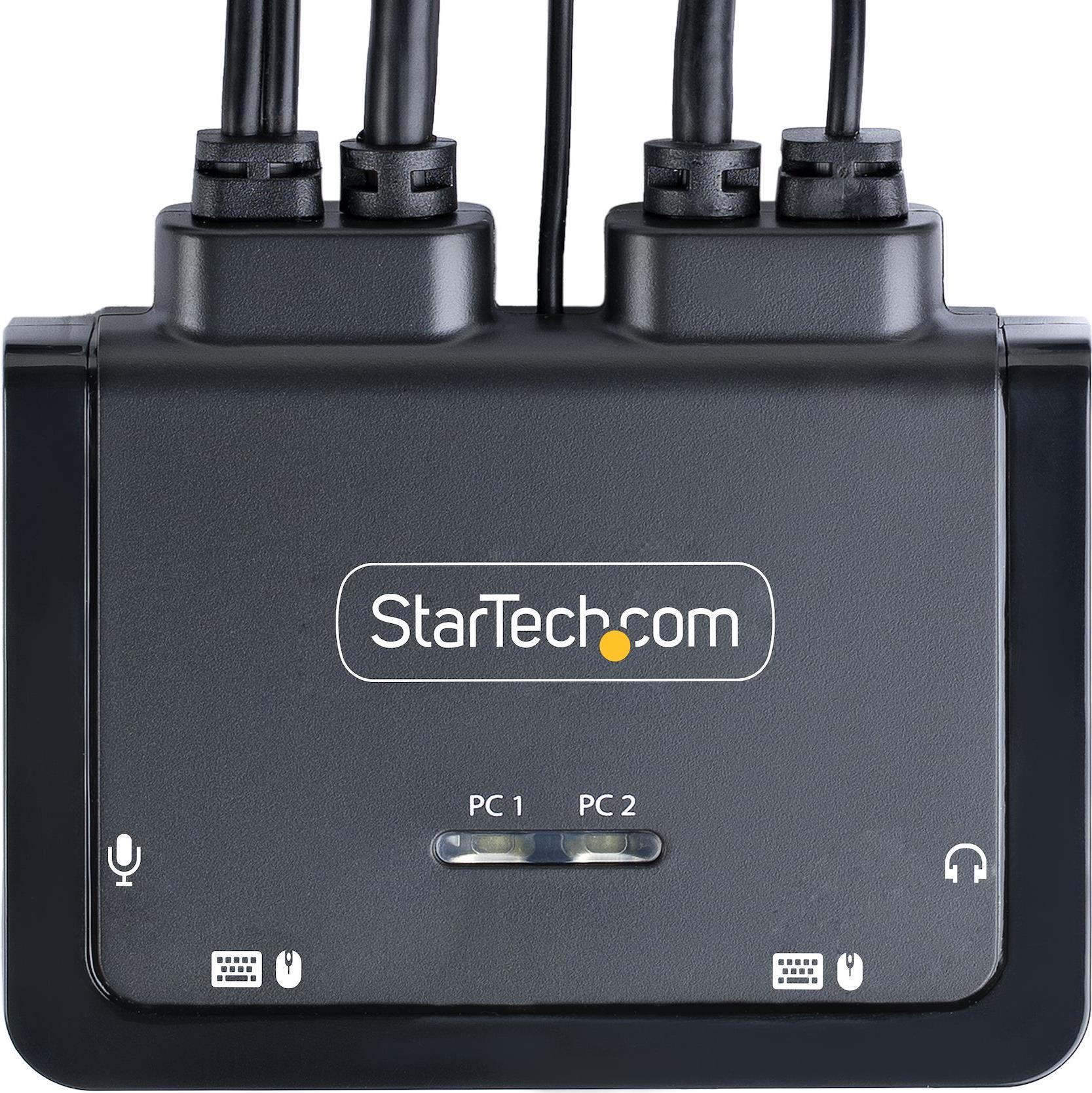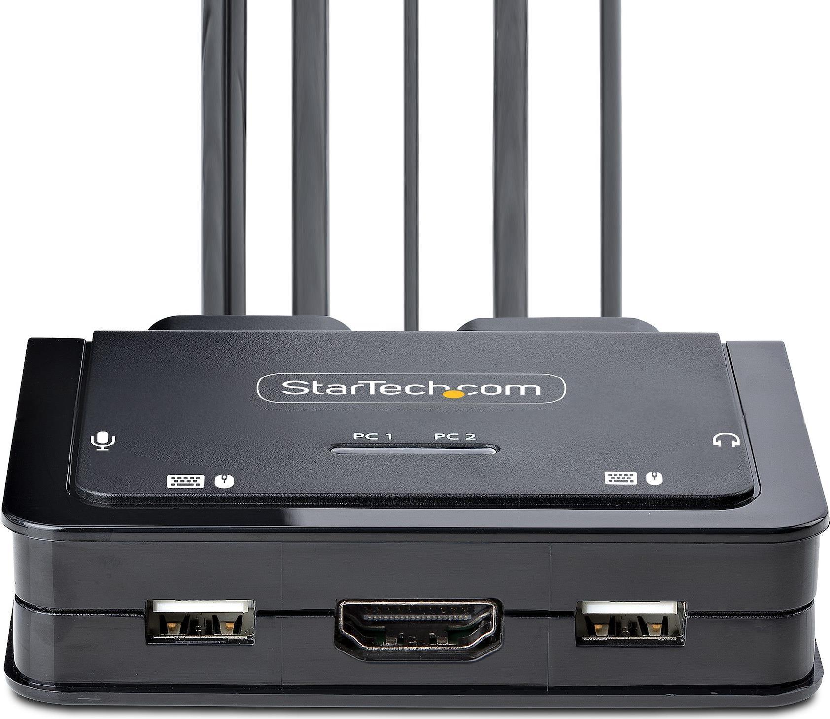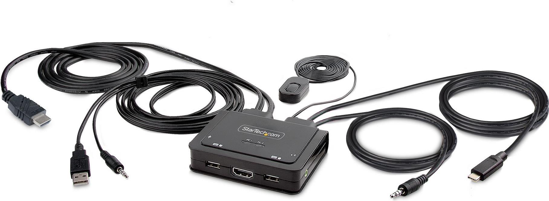 | Produktbeschreibung | StarTech.com 2-Port Hybrid USB-C HDMI Cable KVM Switch, 4K 60Hz, Compact KVM with 6ft/1.8m USB-A/HDMI/Audio & 4ft/1.2m USB-C Integrated Host Cables, Bus Powered - Remote Push Button/Hotkey Switching (C2-H46-UAC-CBL-KVM) - KVM-/Audio-/USB-Switch - kompakt - 2 Anschlüsse |