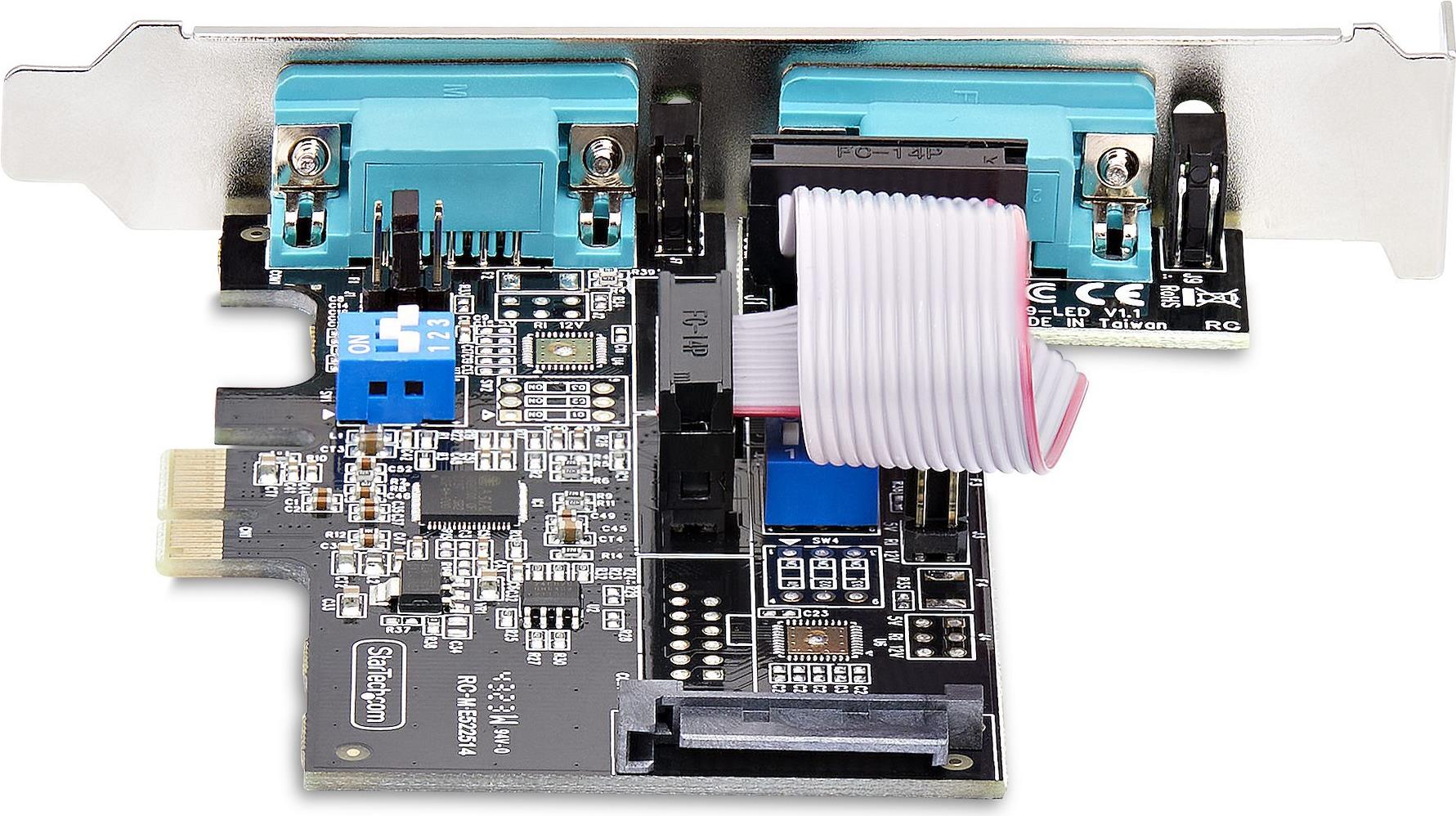 StarTech.com 2-Port Serial PCIe Card, Dual-Port PCI Express to RS232/RS422/RS485 (DB9) Serial Card, Low-Profile Brackets Incl., 16C1050 UART, TAA-Compliant, Windows/Linux, TAA Compliant - Level-4 ESD Protection (2S232422485-PC-CARD) - Serieller Adapter - PCIe - RS-232 x 2 - TAA-konform