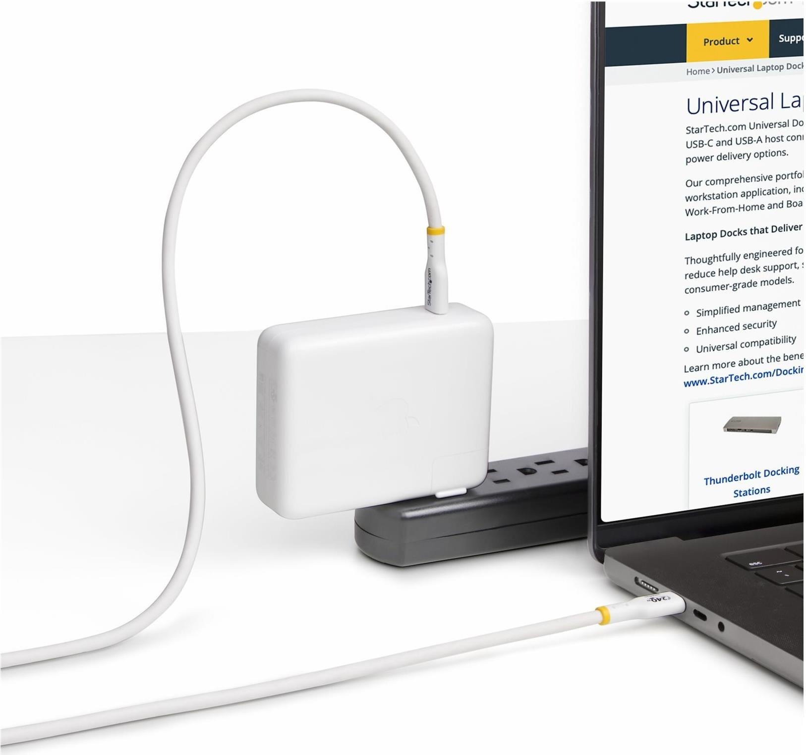 Mit einer Ausgangsleistung von bis zu 5A unterstützt das USB-C-Ladekabel bis zu 240 W Power Delivery zum Aufladen eines USB-C-Laptops oder zum Schnellladen eines Tablets oder Smartphones. Verbinden ein USB-C Laptop mit einem USB-C Wandladegerät.