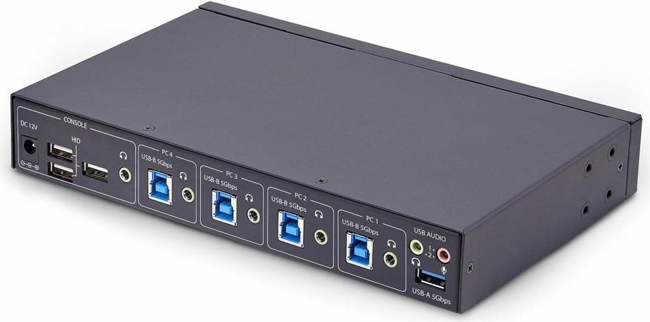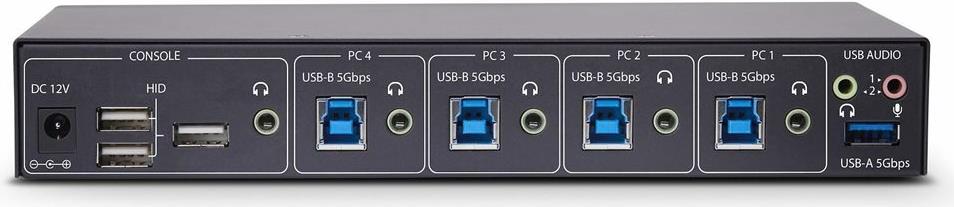 Hotkeys ermöglichen es, Audio von einem Computer zu hören, während Sie einen anderen steuern. USB-Audio und 3,5mm Pass-Through sind verfügbar, und LEDs zeigen den Status der Anschlussauswahl an, während ein akustisches Signal die Hotkey-Auswahl bestätigt.